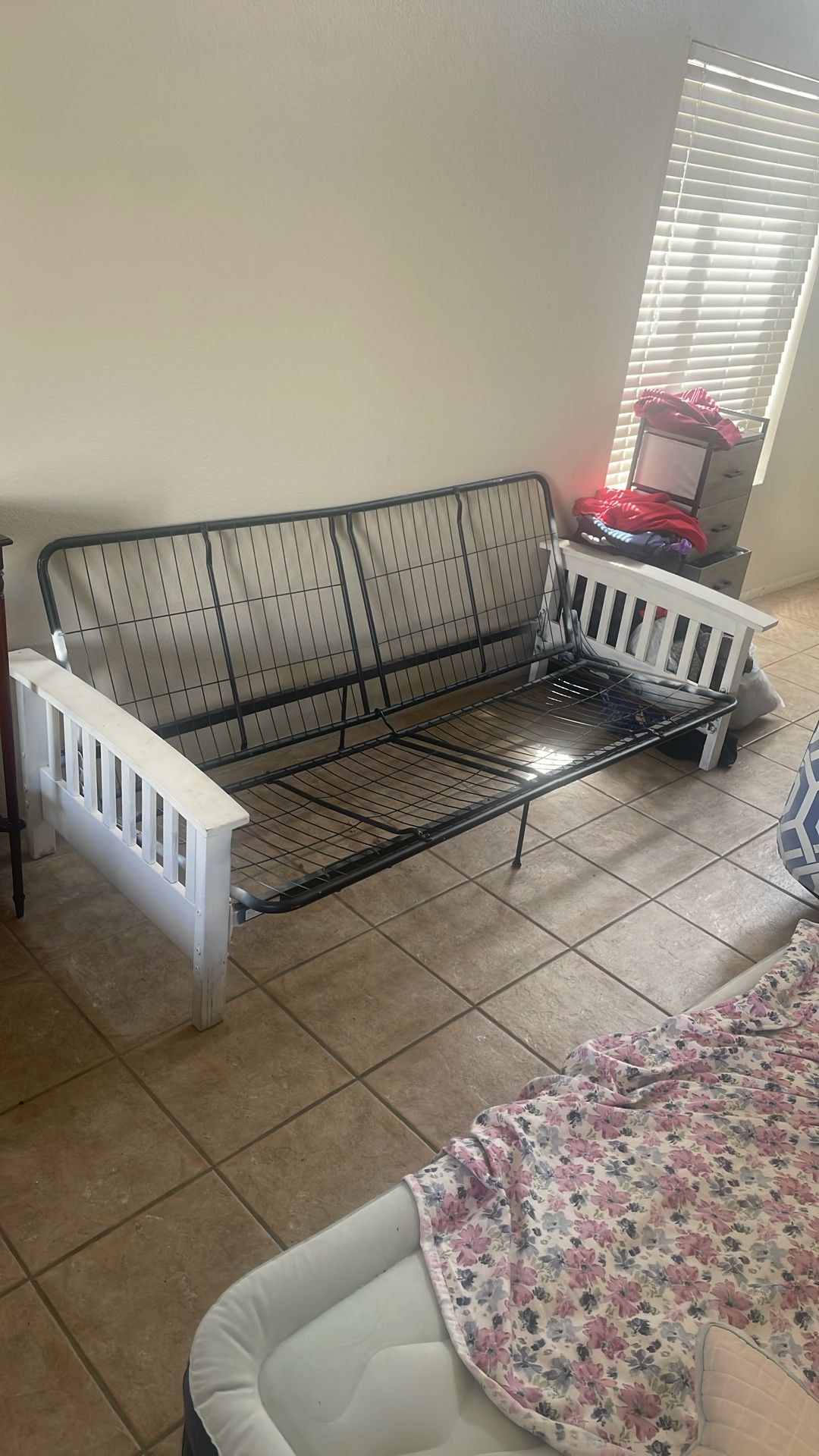Wood and metal futon frame. Can use a new coat of paint on the handles, great quality. Pick up 67th Ave and Bell rd