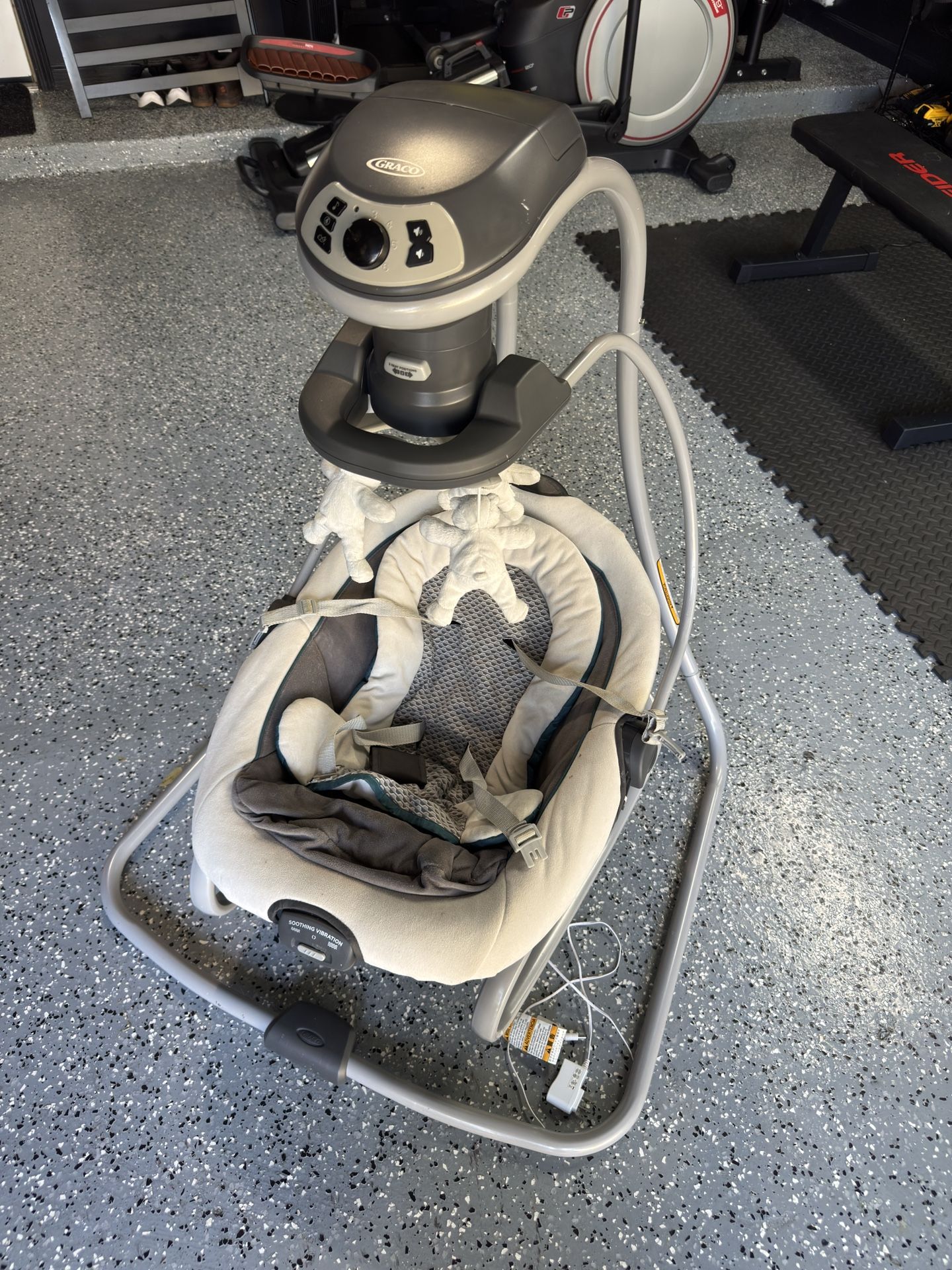 Adjustable swing speeds, Multi-position, Music, Nature sounds, Portable, Vibration, Washable cover