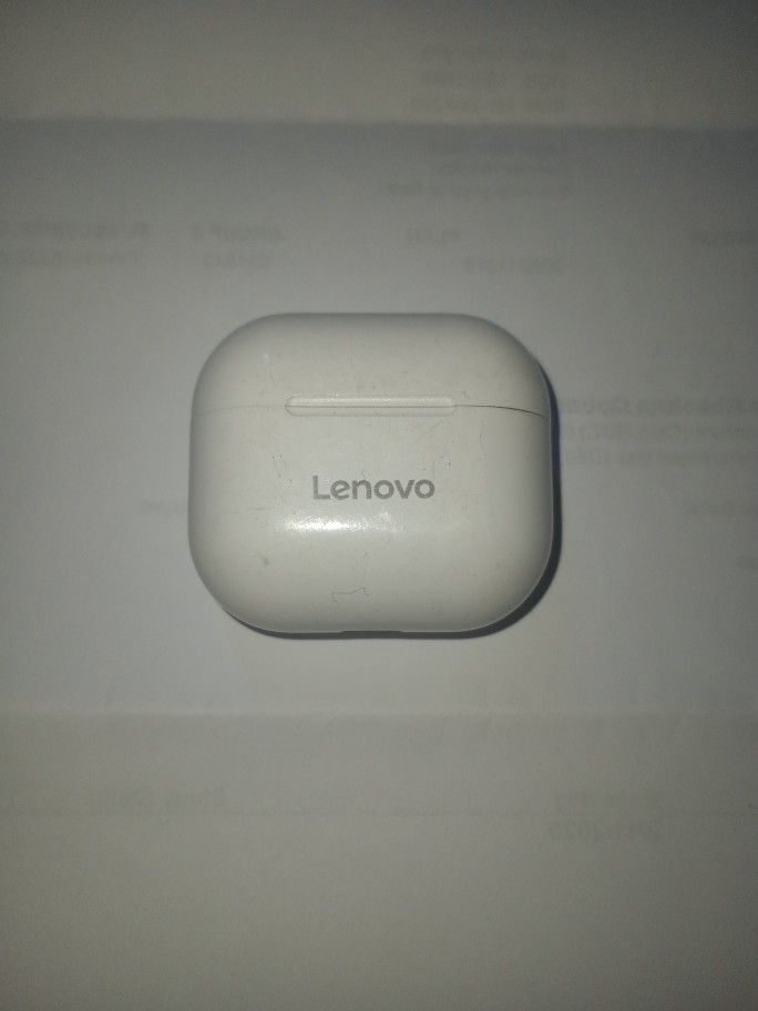 White Lenovo Bluetooth charger case with Right Ear Bud