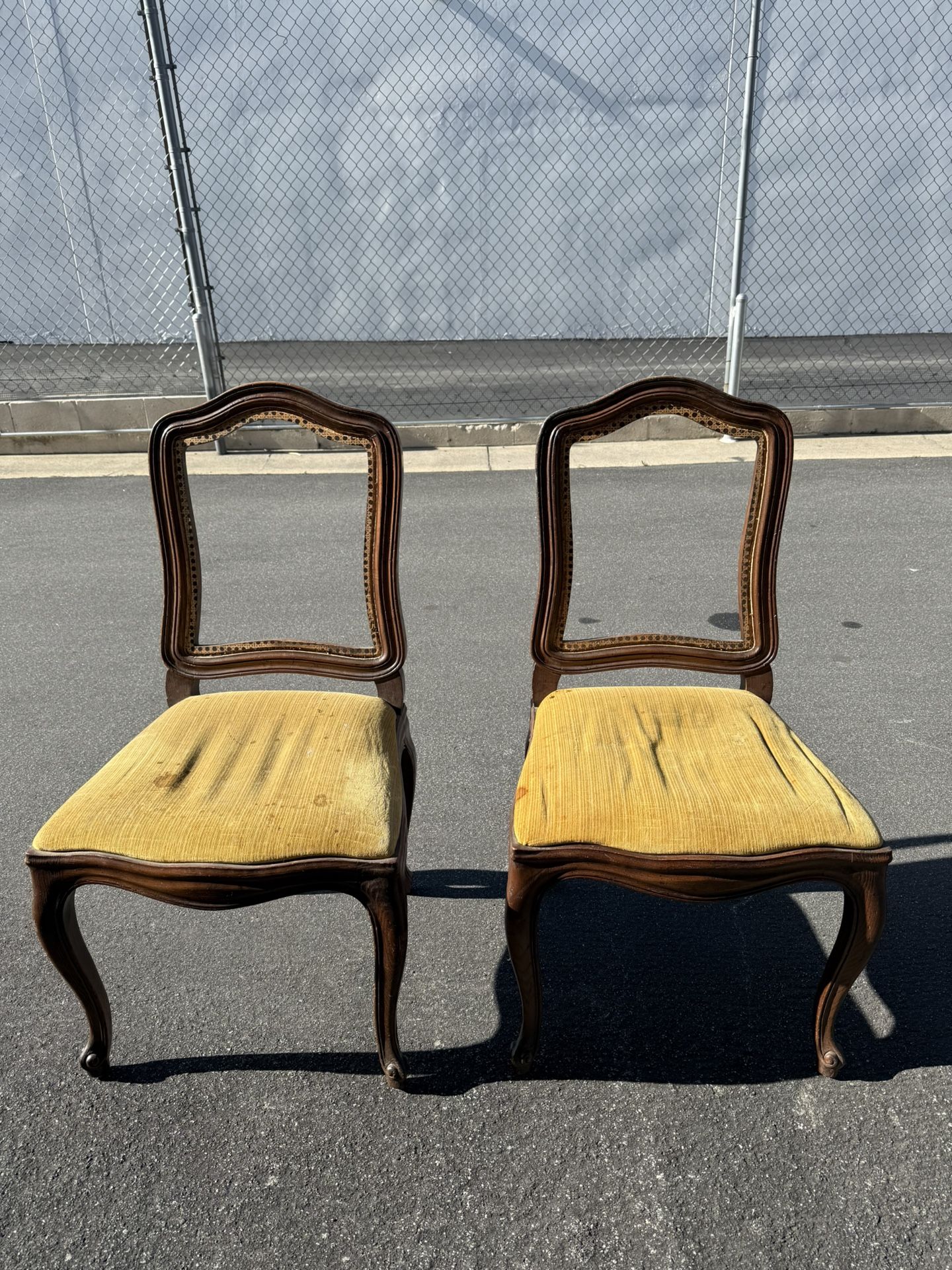 These wooden chairs are from the late 50’s to 60’s and are perfect for someone who wants a vintage feel and enjoys a restoration project. H - 37.5” W - 20” D - 19”