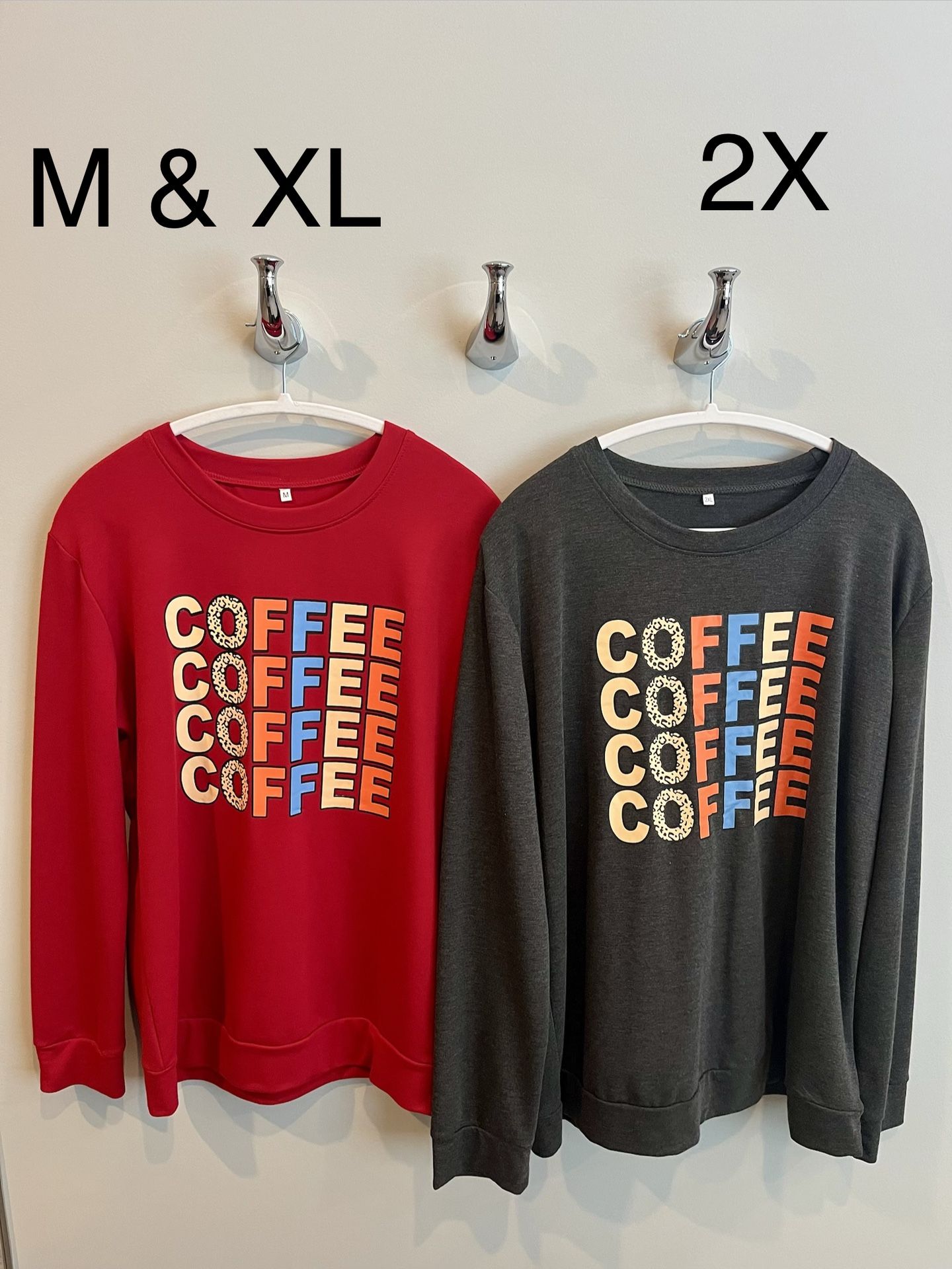 Women’s Graphic COFFEE Lightweight Tunic Sweatshirts in multiple sizes, NEW, $20 ea