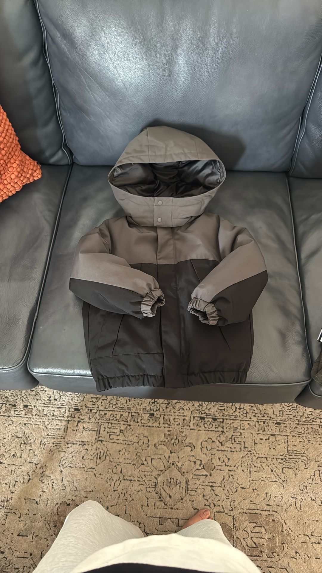 Excellent condition only worn 3x last year for a snow trip. All buttons and zippers are fully functional no stains or rips. Hood is detachable - two tone black and grey Kids size 3-4 yrs