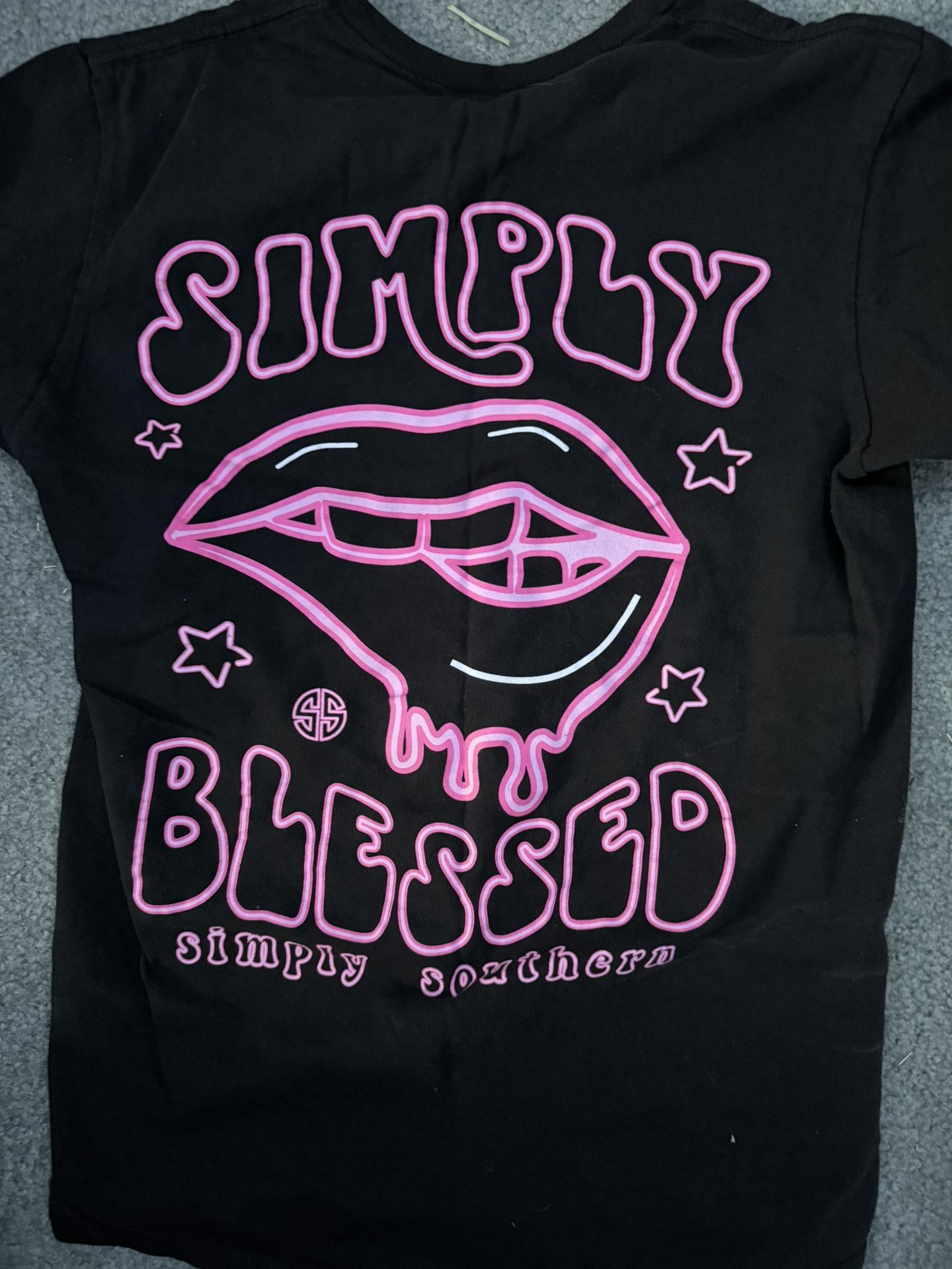 Size Small Women’s Black t-shirt with 'Simply Blessed' design. Great condition! Barely Worn!