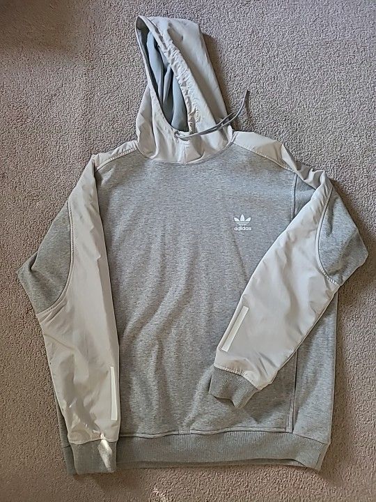 The product is a new vintage adidas pullover hoodie in size XL. It is a classic gray color with a pullover style, making it a versatile and comfortable addition to any man's wardrobe. The hoodie features the iconic adidas branding, adding a sporty touch to the overall look. Perfect for lounging around or staying warm during outdoor activities, this hoodie combines retro style with modern comfort.