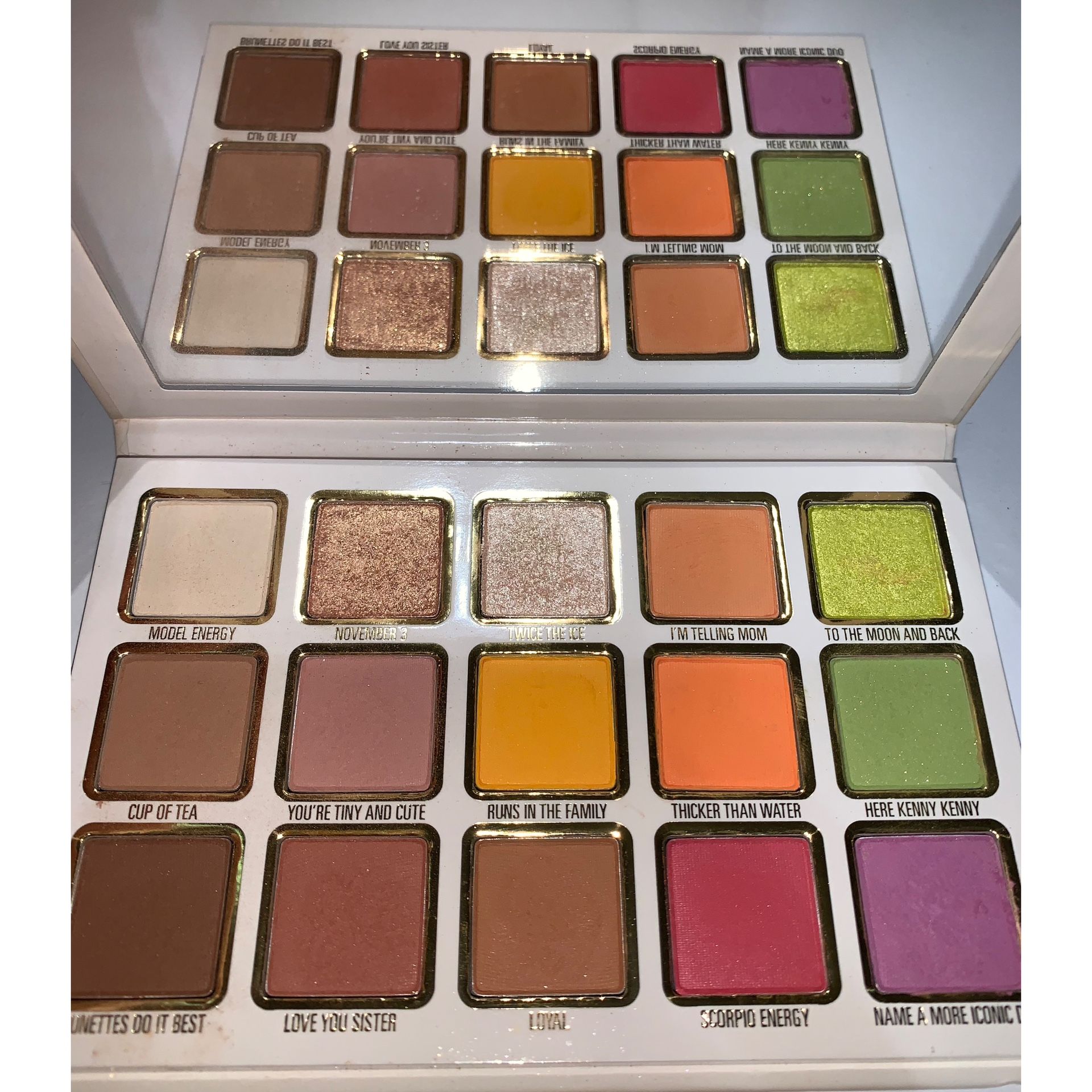 🤎Kylie Cosmetics x Kendall Part I Collection Limited-Edition Pressed Powder Palette 🤎The Kendall pressed powder palette comes with 15 versatile matte and metallic shades! 💚Model Energy (matte vanilla) 💚November 3 (metallic peach champagne with gold pinpoints) 💚Twice the Ice (metallic icy beige) 💚I’m Telling Mom (matte midtone tangerine) 💚To the Moon and Back (metallic vibrant green with silver sparkle) 💚Cup of Tea (matte medium brown) 💚You’re Tiny and Cute (matte dusty mauve) 💚Runs in the Family (matte vibrant yellow) 💚Thicker Than Water (matte neon orange) 💚Here Kenny Kenny (matte lime green with silver sparkle) 💚Brunettes Do it Best (matte cool tone brown) 💚Love You Sister (matte rose terracotta) 💚Loyal (matte warm brown) 💚Scorpio Energy (matte cherry pink) 💚Name a More Iconic Duo (matte pastel lilac) 15 SHADES 🤎Warm and cool tones. 3 FINISHES 🤎Smooth mattes, multidimensional metallics, and glittery shimmers. HIGHLY PIGMENTED 🤎Soft textures delivering highly pigmented color payoff.