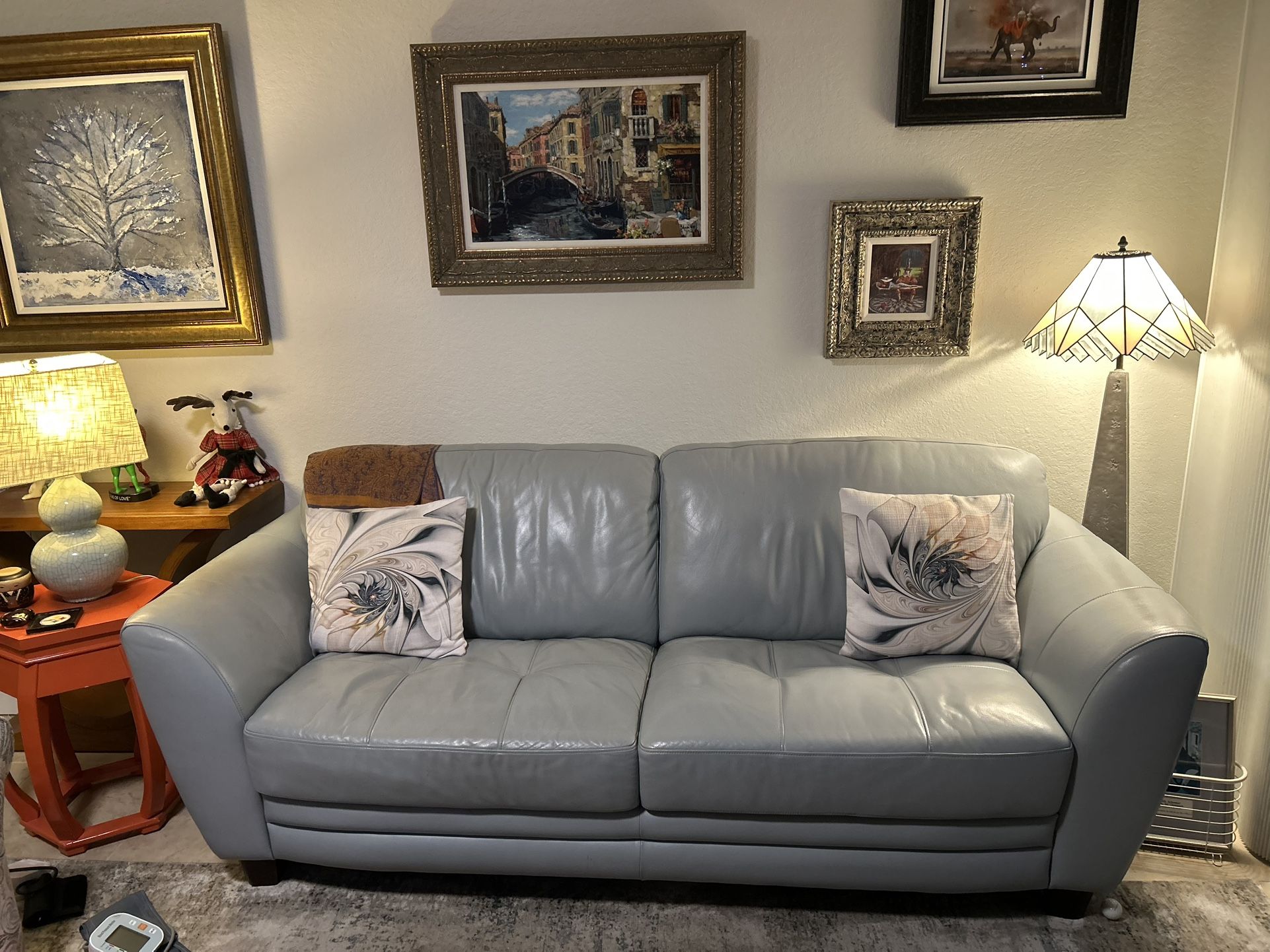 Aqua leather 90”sofa bought new in 2021 from Naples Baer Furniture store available for local pick up here in Naples Asking $400