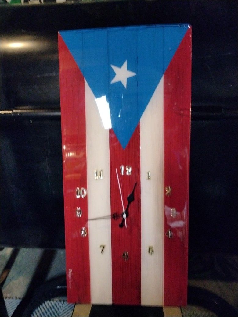 Puerto Rican Wall Flag Clock, 24"X10"