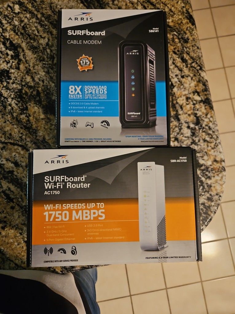 Save money with your internet provider by having your own equipment. Both these items work fine. We decided to get a newer combo. Arris Surfboard Model SB6141 & Arris Surfboard Wi-Fi Router Model SBR-AC1750. Well taken care of.