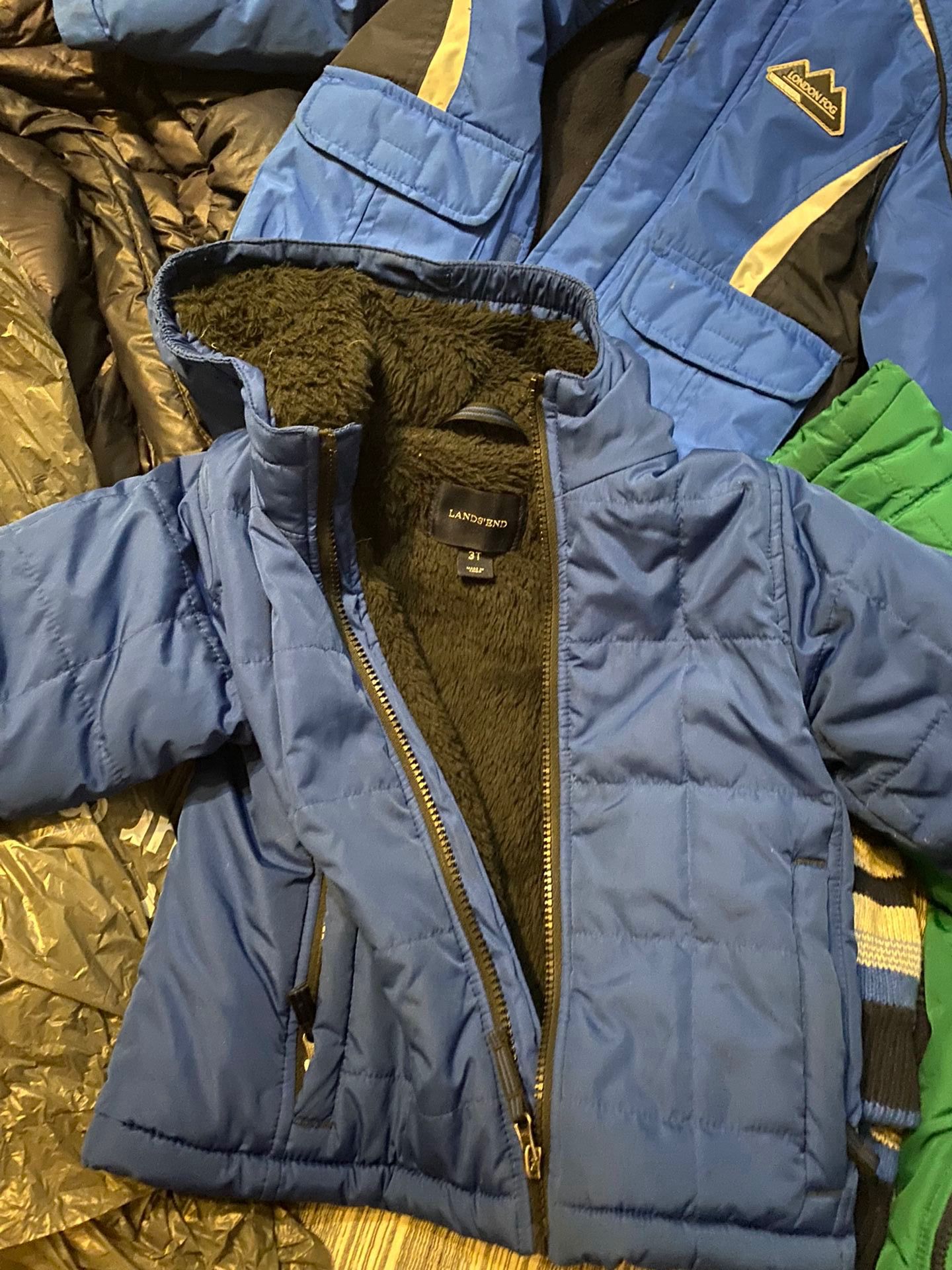 Lands end kids winter jackets (fuzzy blue one ) $10 Yellow and gray jacket is a snow jacket. $10 The London fog has a fleece liner can be used for the snow as well. $8 The maroon one is children’s Place puffer. $5 Gently used Great condition, Price is EACH Pick up Folsom area XP