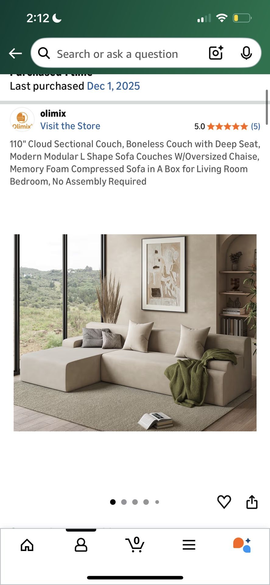 I ended up going with another couch. This one is still very cute It originally comes in two different boxes 1 box is unopened and the L shape part it unboxed but still in the new condition. Same color as the photo. Again it’s new just went with a different one. Pick up only