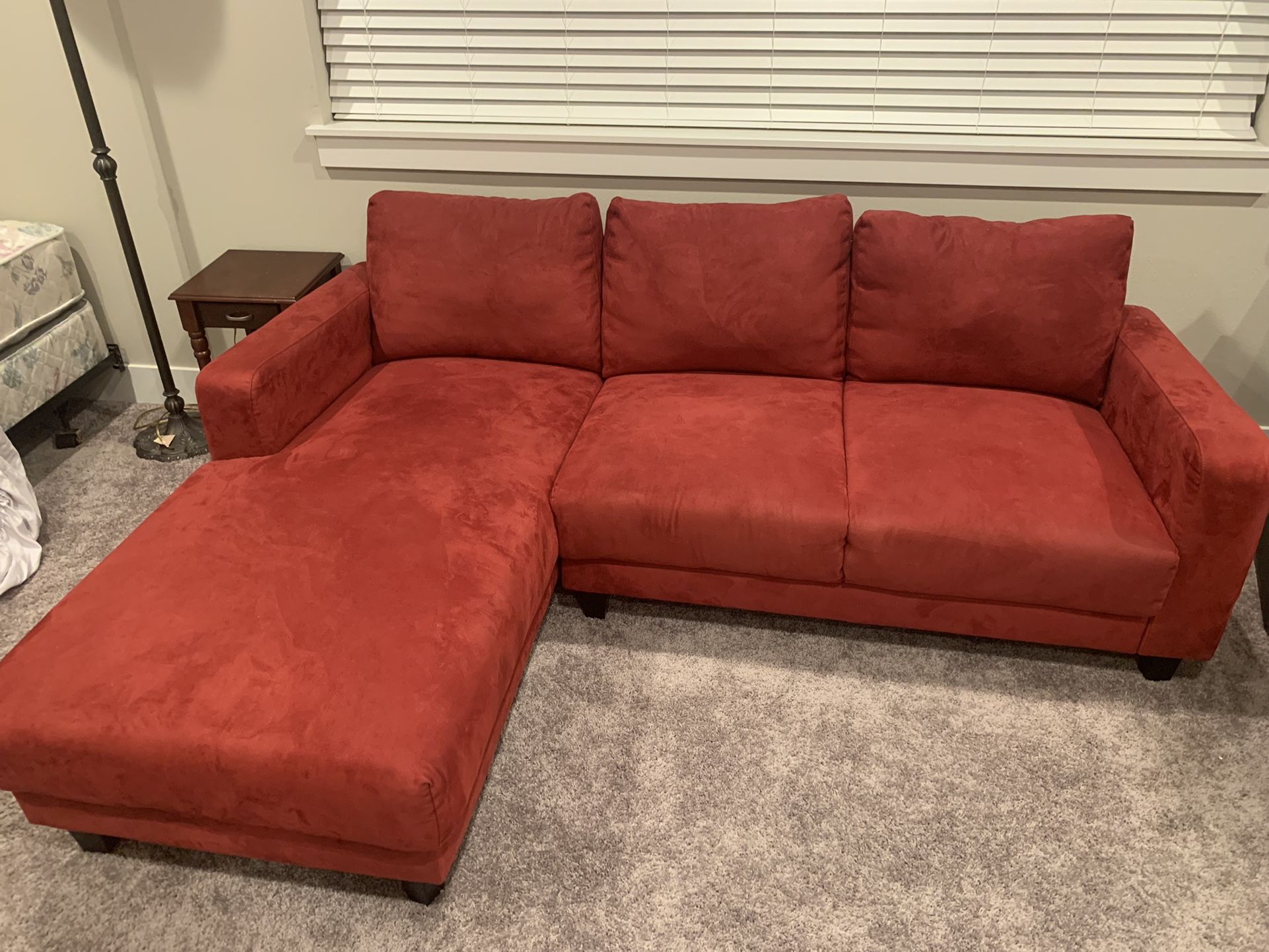 Red Suede Couch Sofa Sectional Furniture *LIKE NEW*
