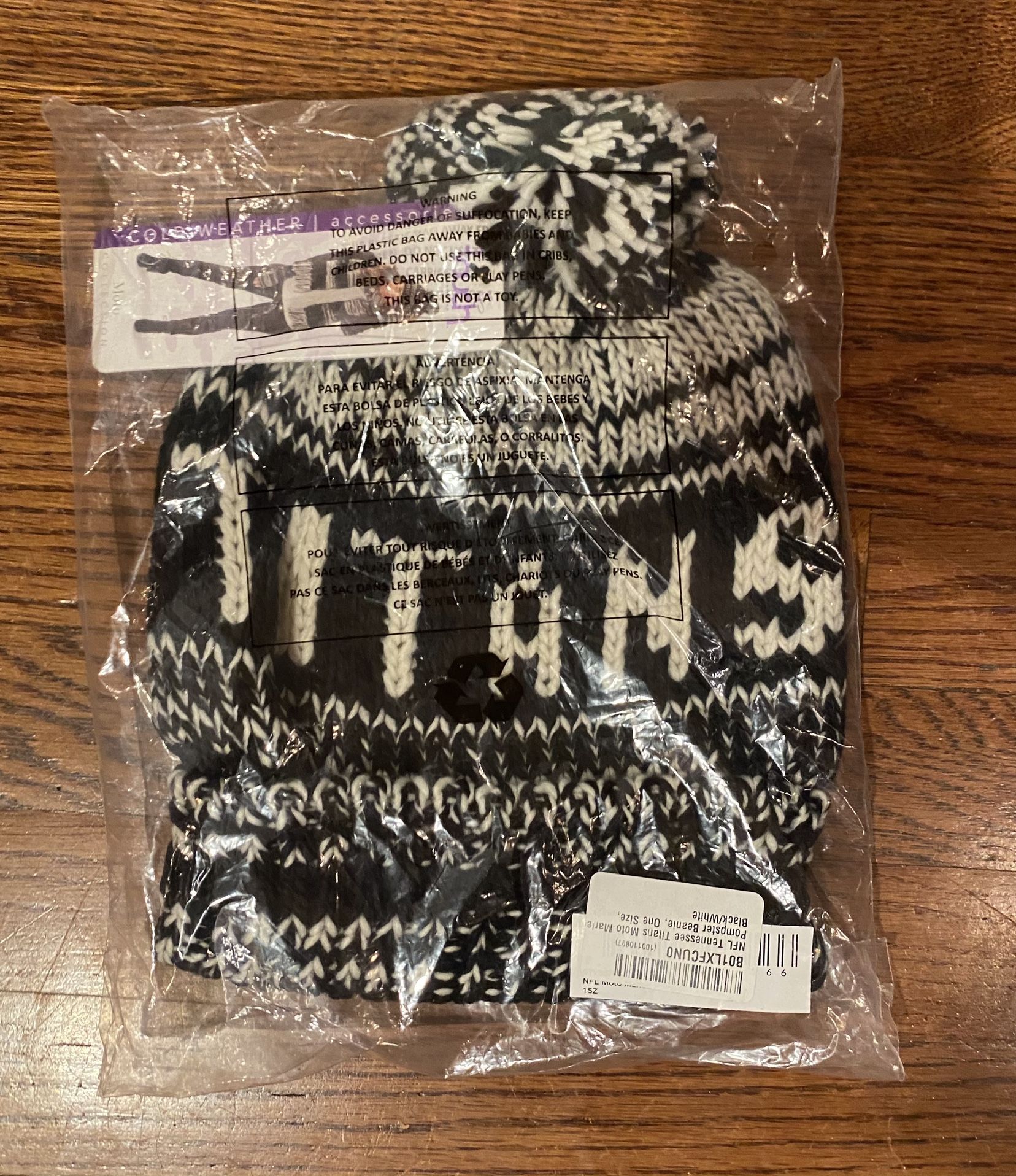 Brand new, never used. NFL Tennessee Titans Moto Marled Pompster Beanie Women's Touch by Alyssa Milano. Black/white. On size fits all hat. Also have a Tennessee Titans woman’s hoodie size large.