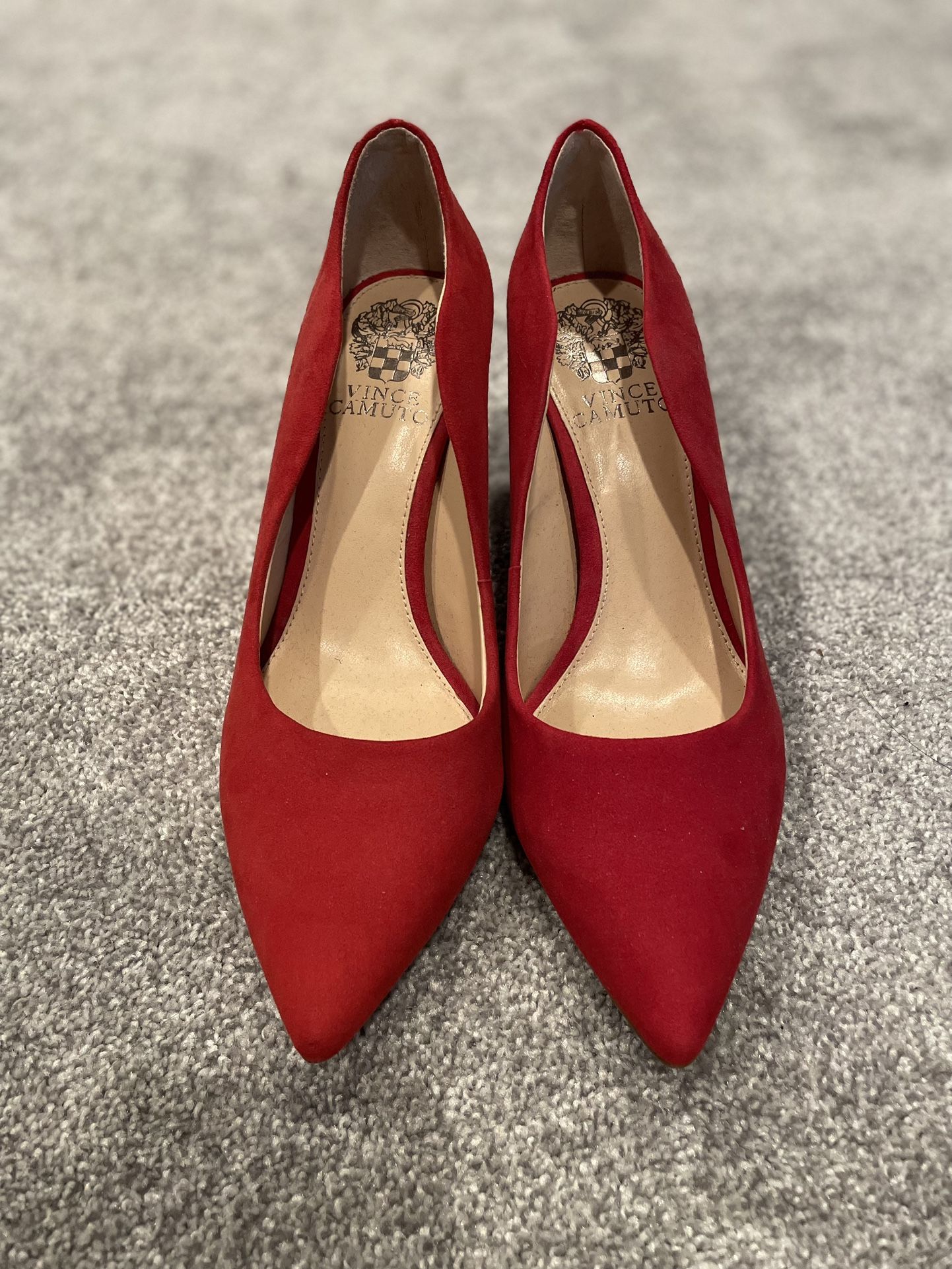 VC Jaynita Pointy Tor Pump in Cherry Red Suede. Wore only once, a little dirt mark on the heels only.