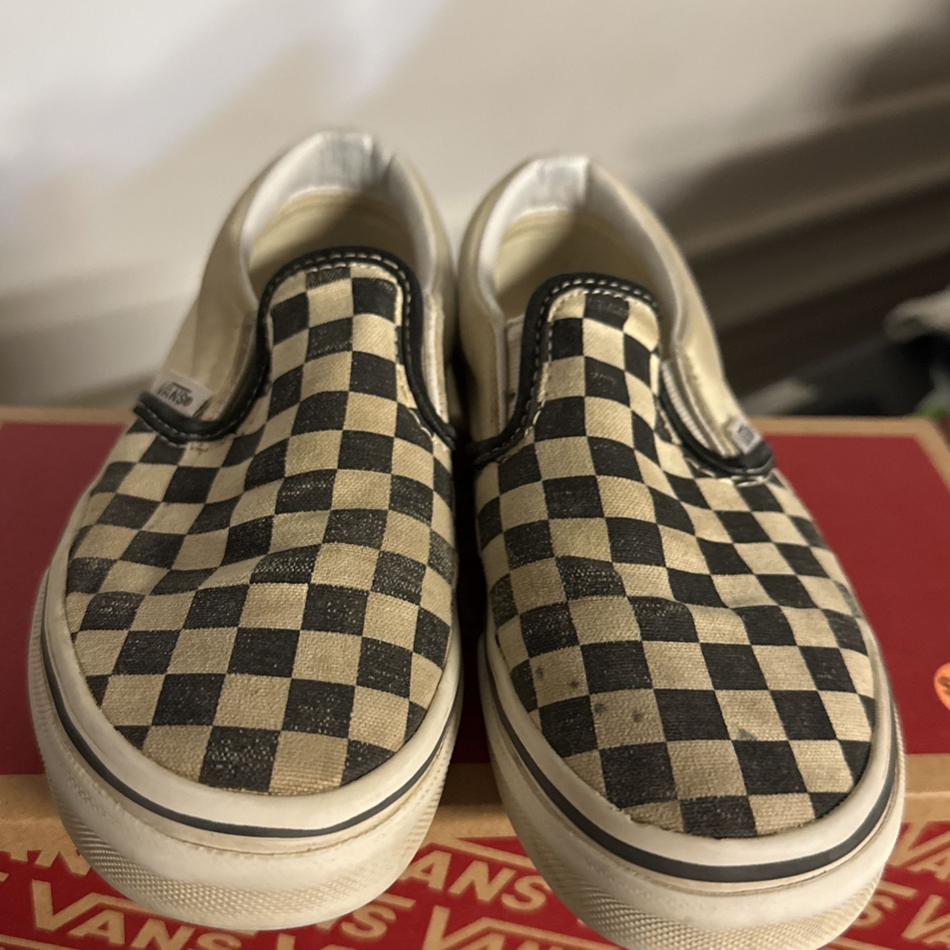 Classic slip-on vans. Size 1. Color checkerboard black and white.