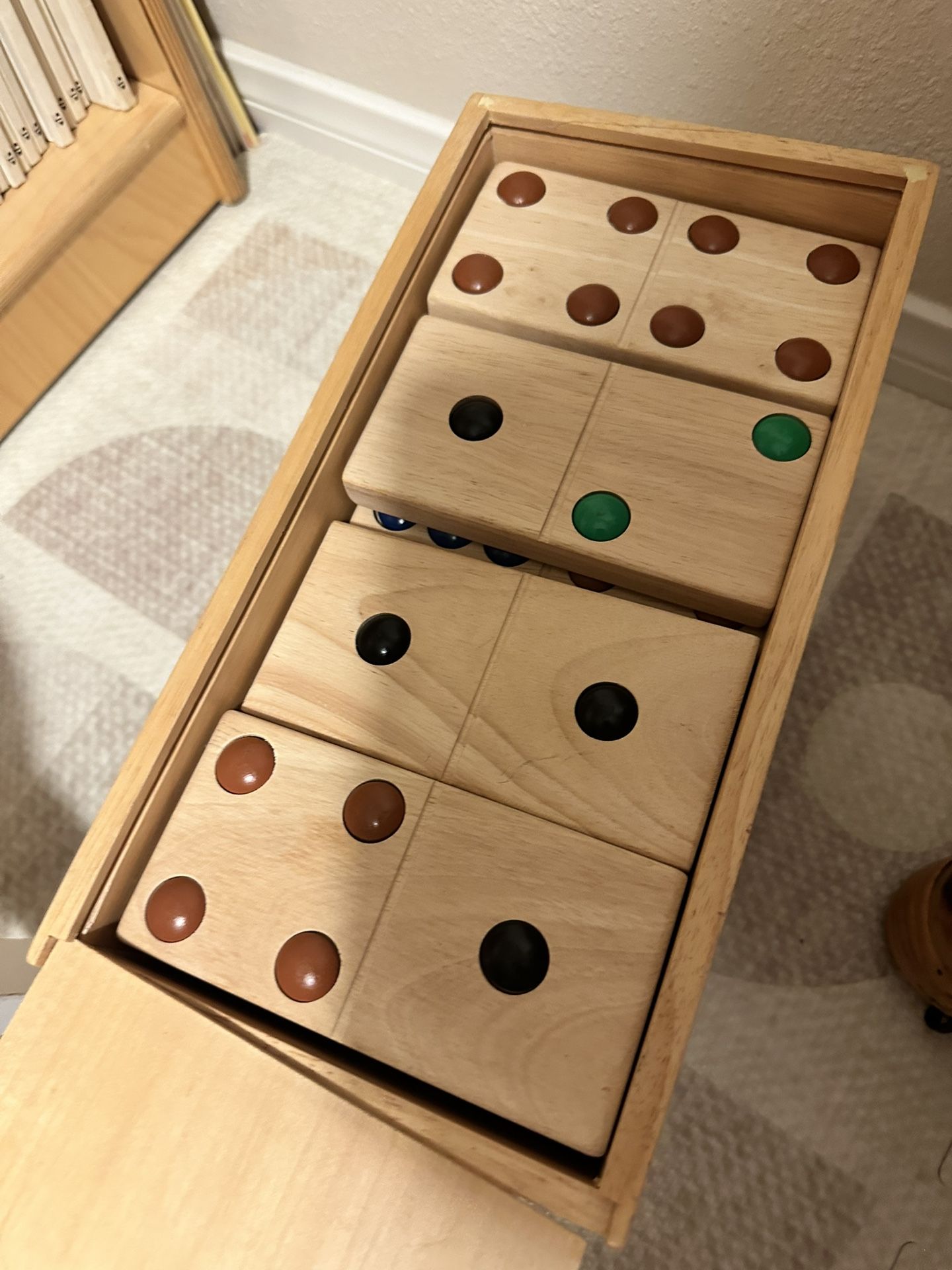 Wooden dominos In A Large box