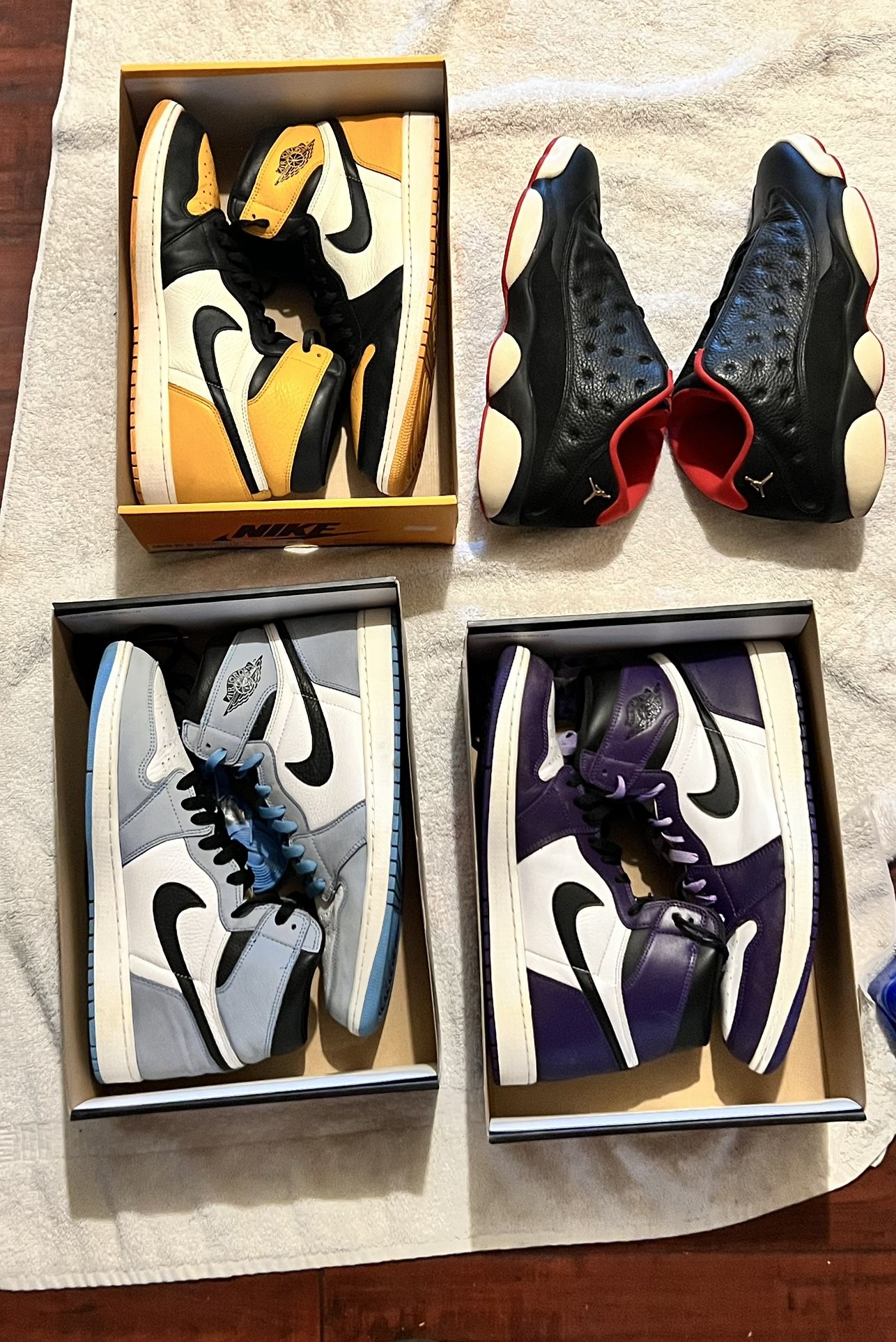 Three pairs of Jordan 1’s & Jordan 13 all size 13 all 100% authentic pick up only price is firm 260 for all or 100 each serious buyers only