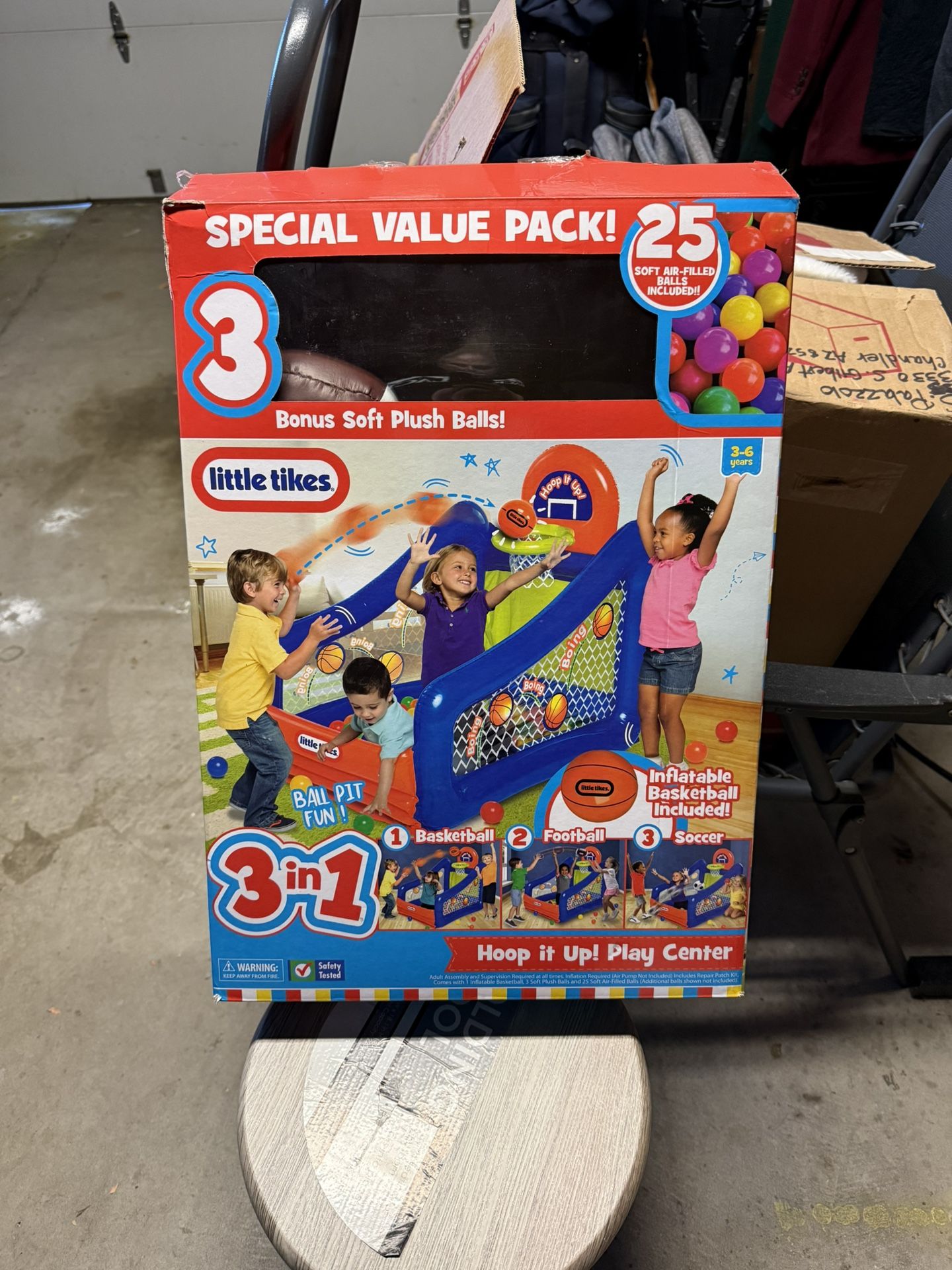 Inflatable Basketball, Football And Soccer 3 In 1 Play Center With Back Of Bags