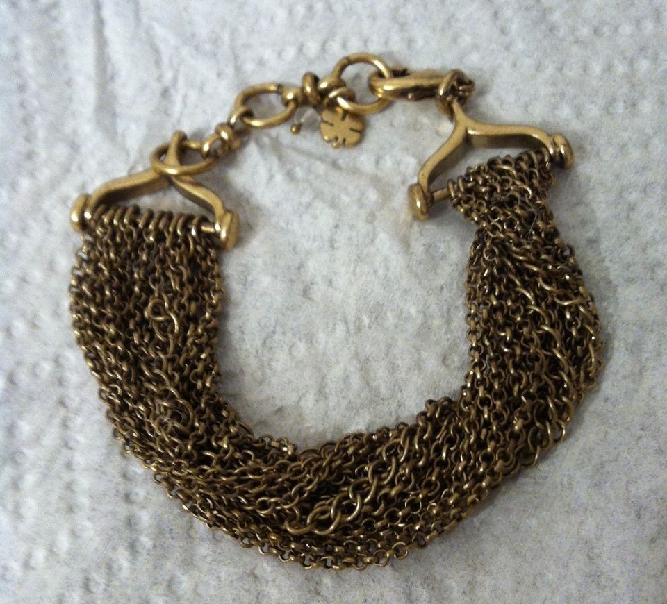 Multi Mesh Chain Bracelet with Clover Charm Hanging. $15 takes it. Not sure if the clover charm is a certain brand. Cool piece. 8". but there are other links you can hook onto to make it smaller.