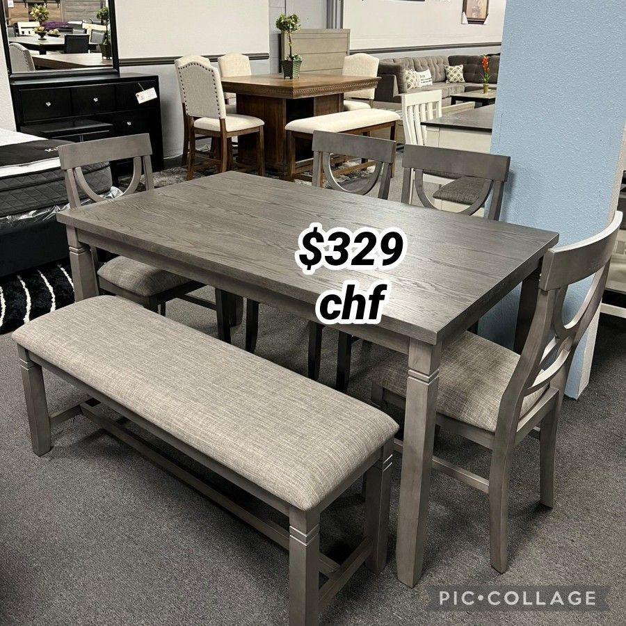 Gray Solid Wood 6 Piece Solid Wood Dining Table Set // Thanksgiving Sale !