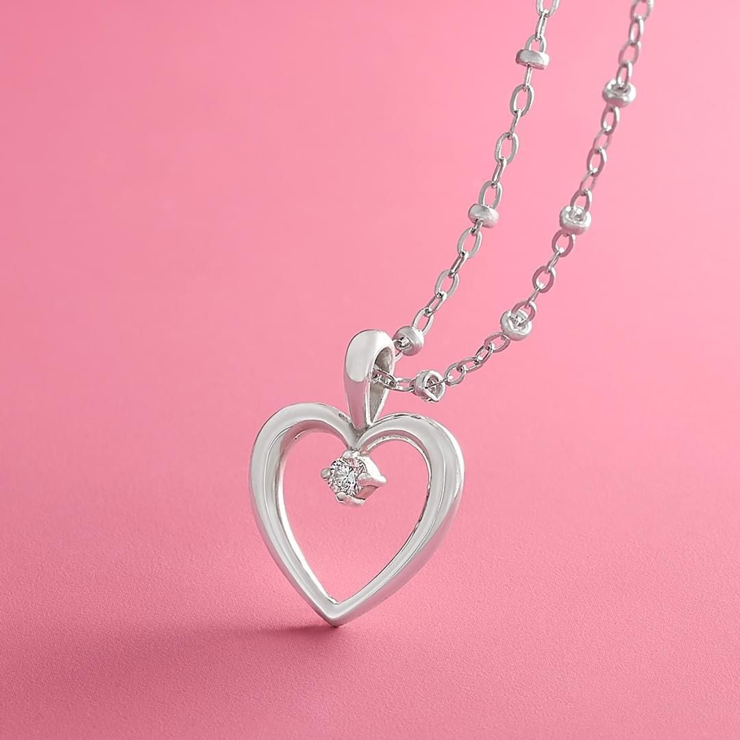 Love is forever. Carry it with you in this sterling silver pendant featuring one full-cut diamond at its core. CM-1(contact info removed)77 Specifications • Sterling Silver • Diamond • Set with one .075 ct full-cut diamond • Diamond Weight: .075 Total Diamond Weight • Diamond Clarity: SI1 CH-121 Sterling Silver Forged Beaded Chain 16 Inches Approximately 3.14mm in Thickness Lobster Clasp Closure Like New Excellent Condition