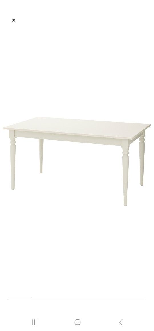 This 6-seat table can easily be extended into a 8-seat table using the included self-storing leaf. The self-storing leaf is easy to insert to extend the table and just as easy to remove and tuck away under the table top when your guests have gone home. The white table top has a smooth, flawless look that is easy to clean. Legs and underframe are made of sturdy, solid hardwood. 6 chairs can be included for $250 Table only $90