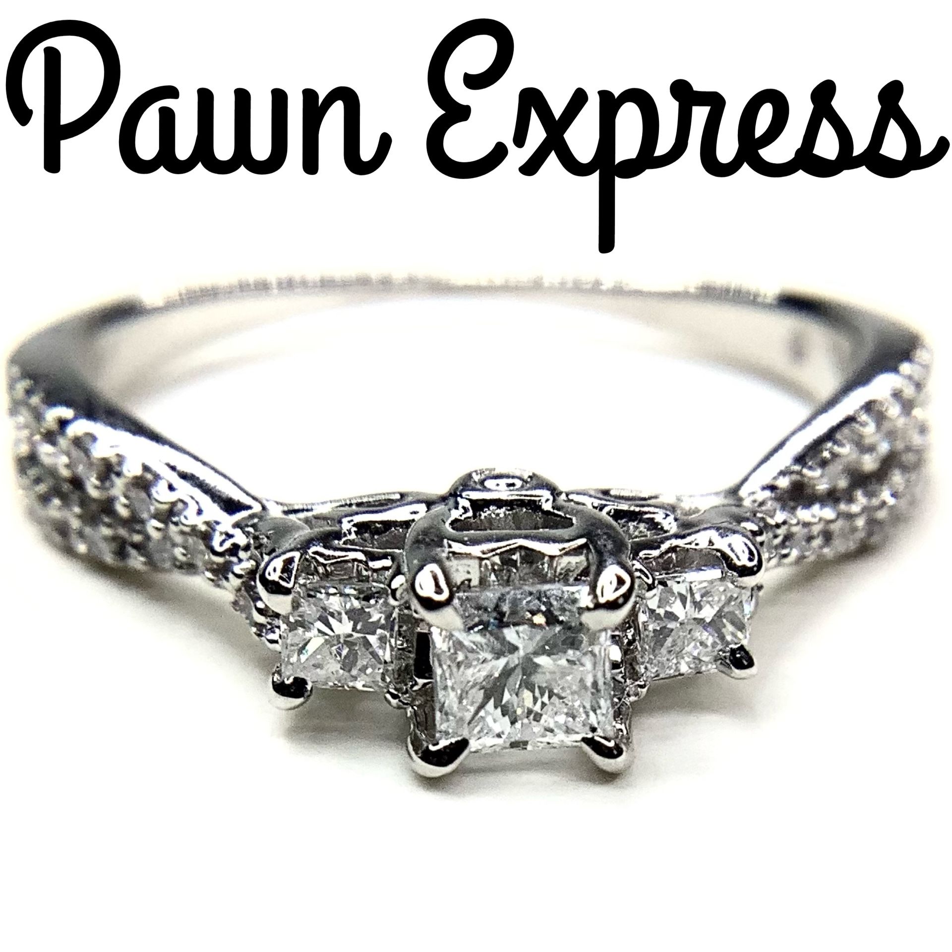 14 Karat White Gold Princess-Cut Center Diamond Stones Gorgeous sparkle! Ring Size: 6.5 Professionally cleaned and polished Gift wrapping available with purchase!