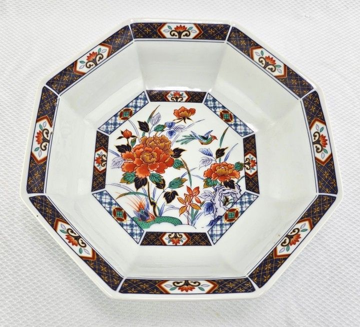 Vintage Japan Imari Porcelain Octagon Bowl 9" Painted Floral