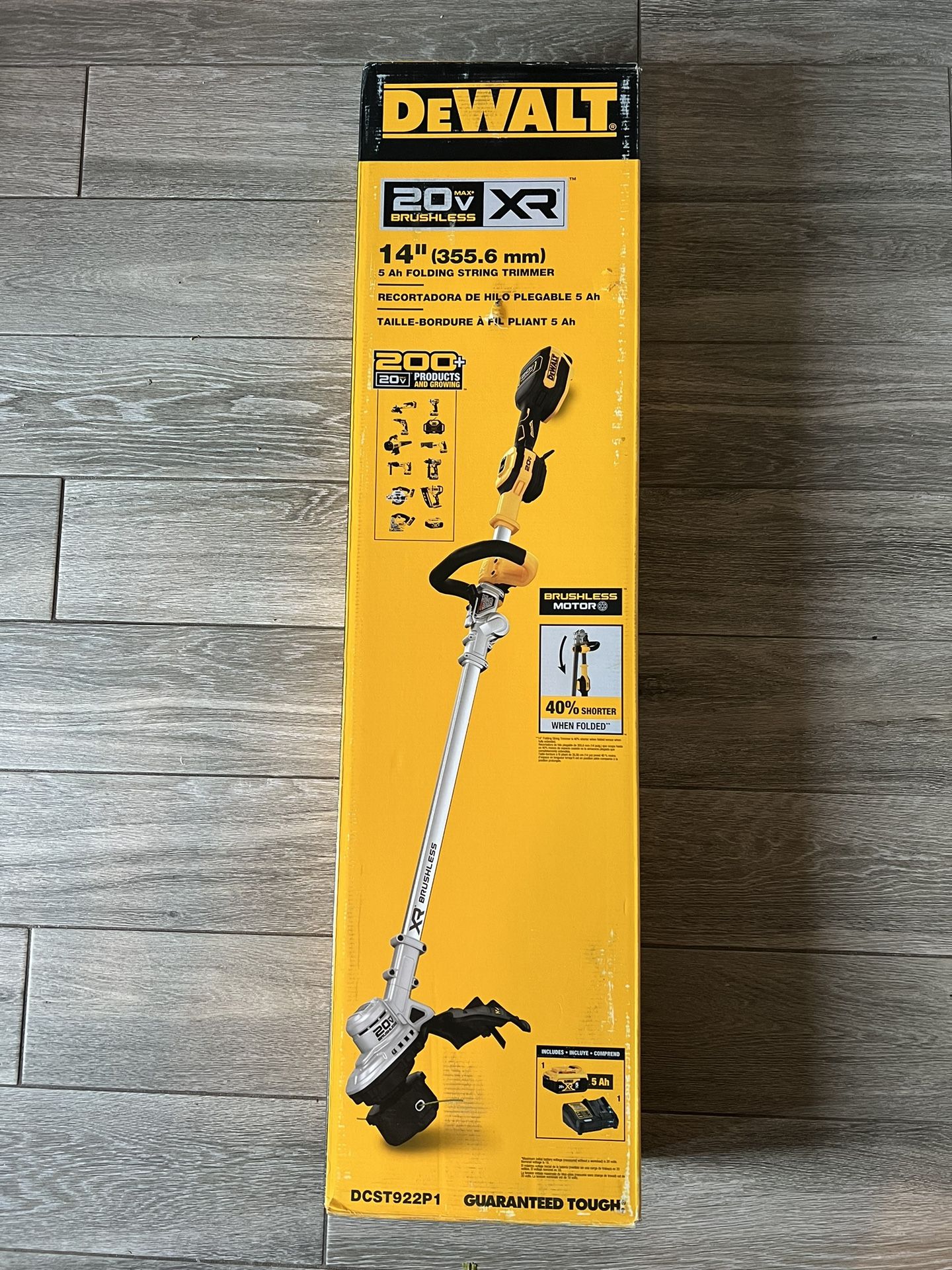 Selling my new Dewalt XR weed trimmer Never open, I tried to returned it back at Home Depot, and my warranty was expired I forgot to purchase a extended warranty. It comes with everything battery and charger also comes with Dewalt & string. I pay $240 plus tax also I bought the string. If you have any questions let me know thanks.