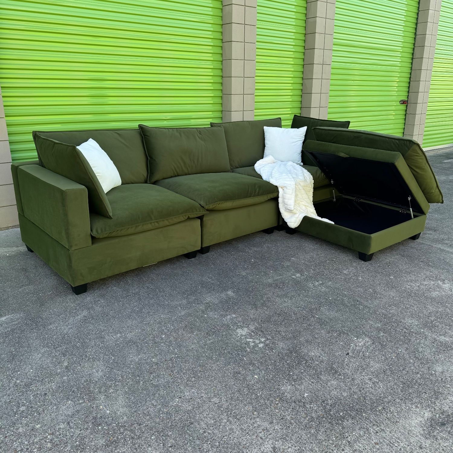 4 PIECE OLIVE VELVET CLOUD βοΈ ON SALE NOW π¨ Typically $1,899 + tax π« NOW ONLY $1,099 + tax! π Features: - Removable and Machine Washable Covers - Stain Release Technology - Connectors to Join Each Module - Feather Cotton Blend for Lasting Shape - 4 Modular Seats for Personal Configuration - Additional Modules Available for Custom Preferred Size MESSAGE US NOW TO SCHEDULE A SHOWING! 122x78 Assembly Available for $100! Delivery Available ALL OVER TEXAS! No payment due until we arrive with your order! Check our reviews for credibility!