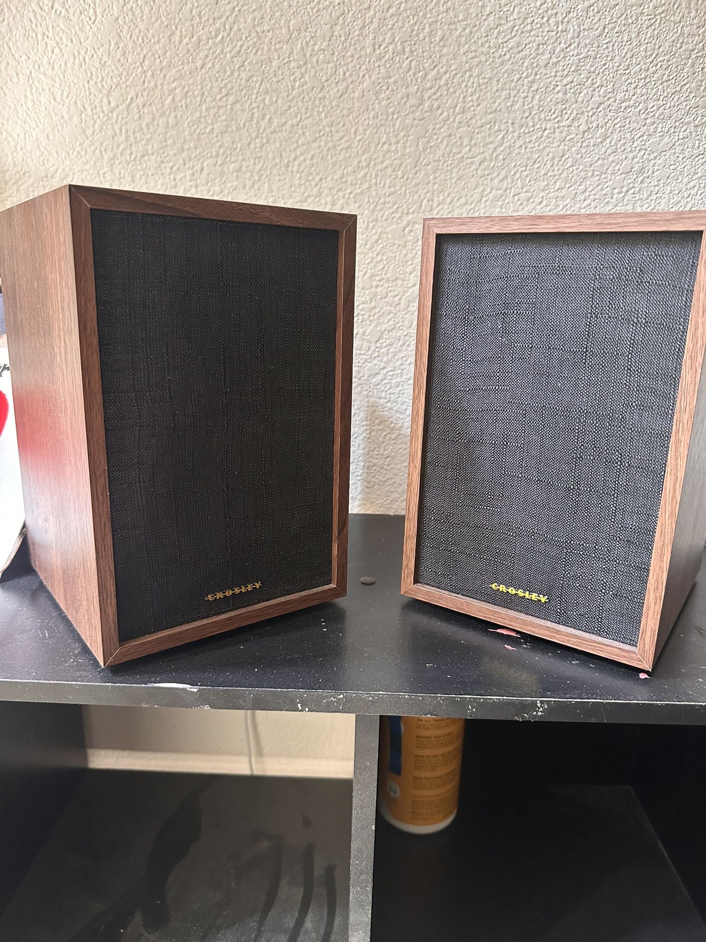 CROSLEY RADIO - S200 STEREO POWERED BLUETOOTH SPEAKERS IN WALNUT - S200A-WA. $40 or first reasonable offer.