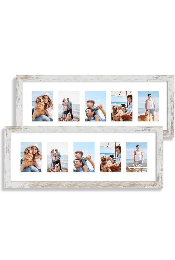 8x24 Picture Frame 2 Pack, Distressed White Wood, Horizontal or Vertical