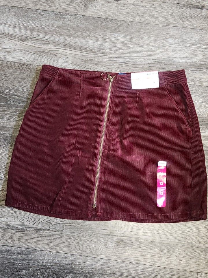 Arizona Sz 13 corduroy Autumn Burgundy Skirt Jc Penny zip front 90s style