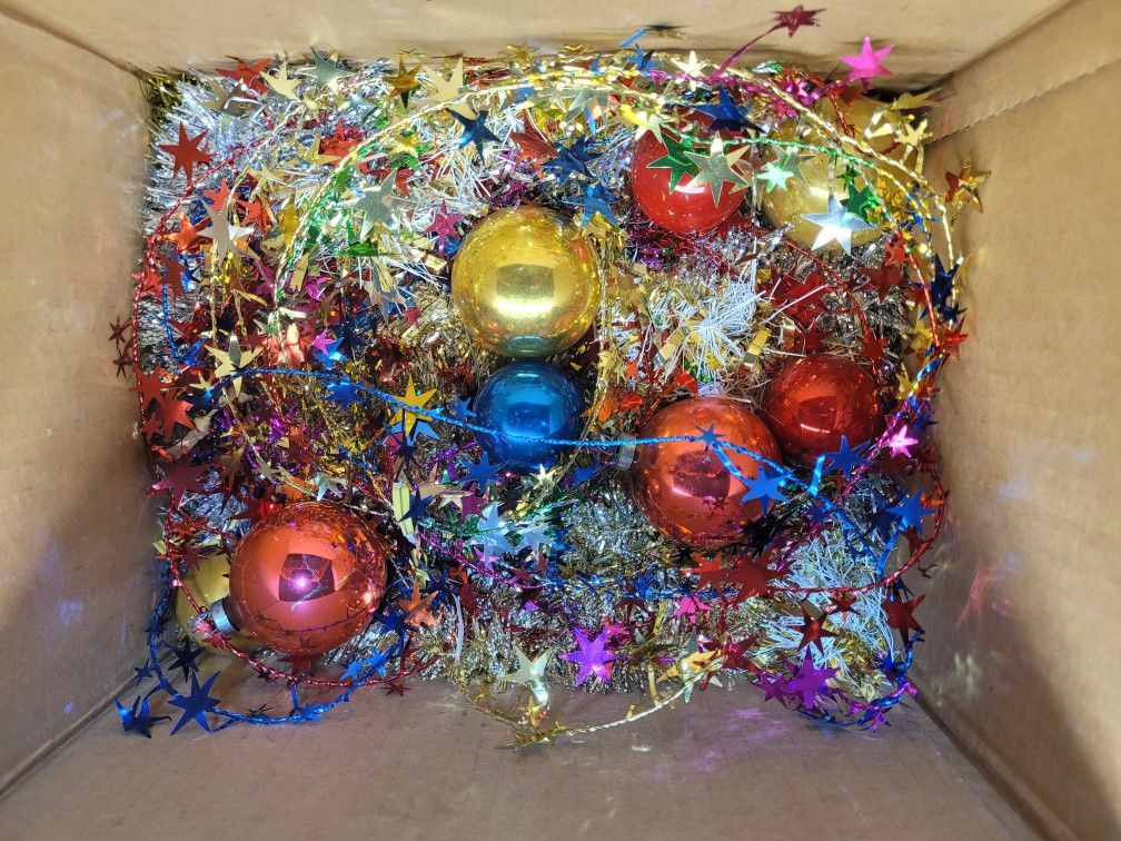 This product is a set of Christmas ornaments and decorations in a multicolor glass material. The set includes an ornament with an art deco style, measuring 4 inches in length, designed for multipurpose recipients. The vintage nature of the collection adds a unique touch to holiday decor. Perfect for adult collectors or those looking to personalize their Christmas tree with original pieces.