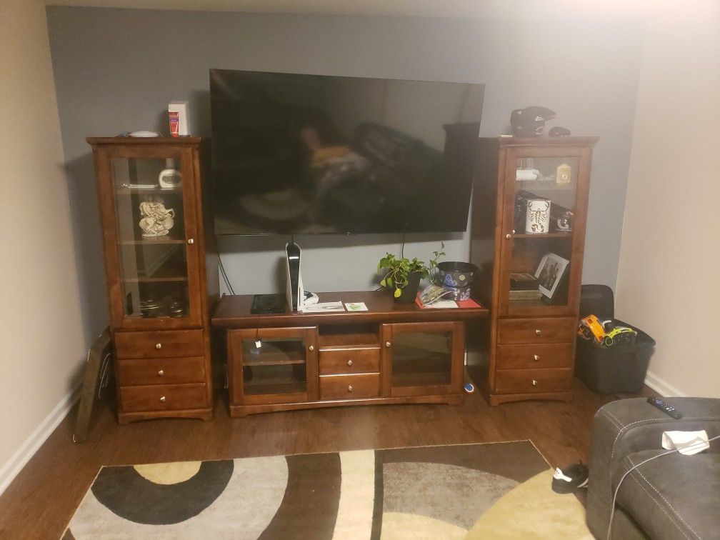 4 piece entertainment center with topper could take it off or on for bigger TVs some imperfections but still in overall decent condition wood very sturdy 300 or best offer