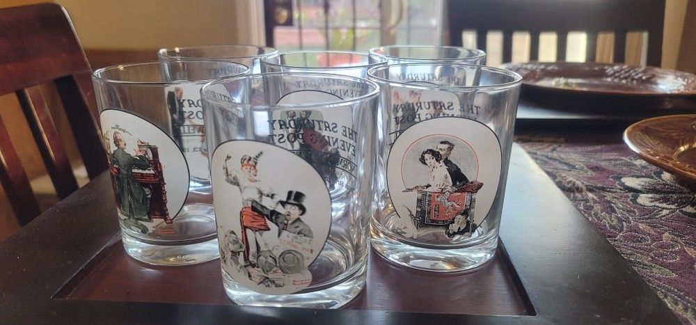 5 glasses Norman Rockwell clean no cracks no chips. Good for any collector. All together.