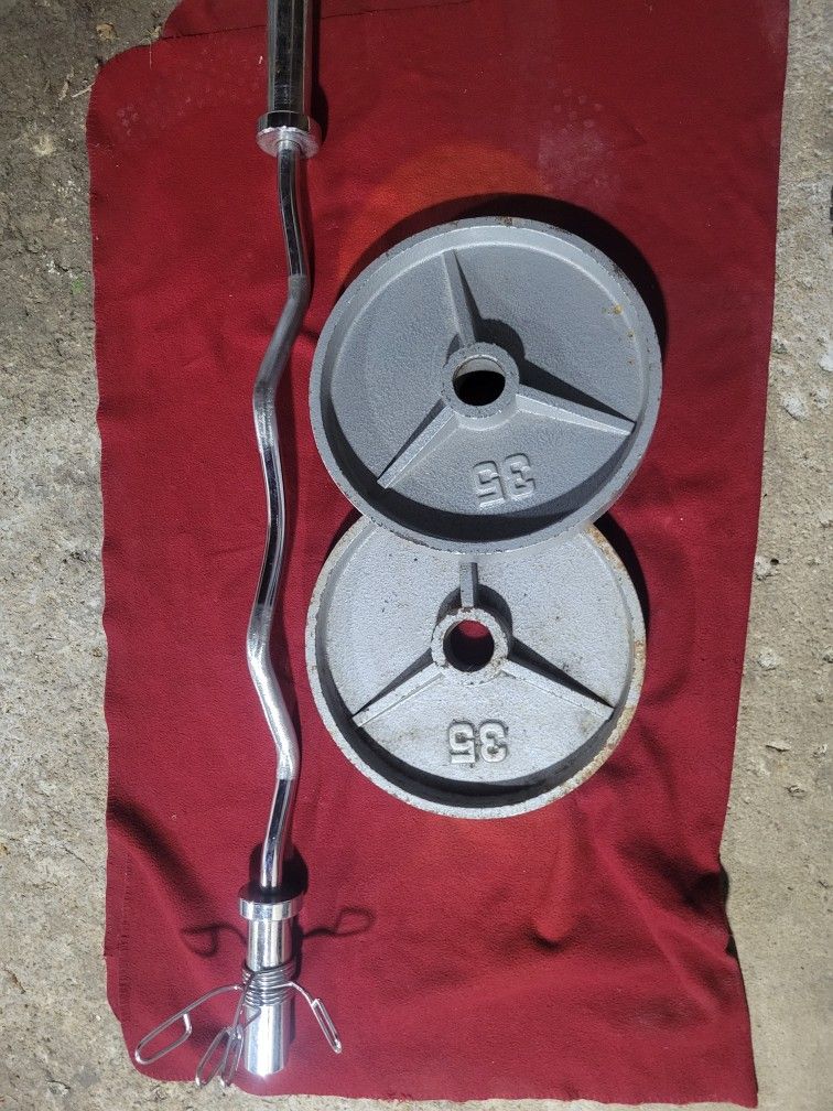 OLYMPIC 2" HOLE. EZ-CURL BAR WITH 2-35s . TOTAL 70LBs 11525 S HALSTED DUNKIN DONUTS/ 7111 S. WESTERN WALGREENS 100$ CASH ONLY. AS IS