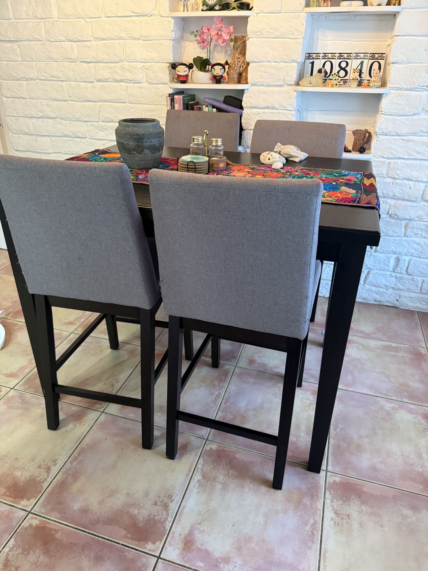 From ashleys furniture. 2 chairs have some scratches on the back and 1 has a stain. Really nice quality wood. Price is negotiable, pickups only
