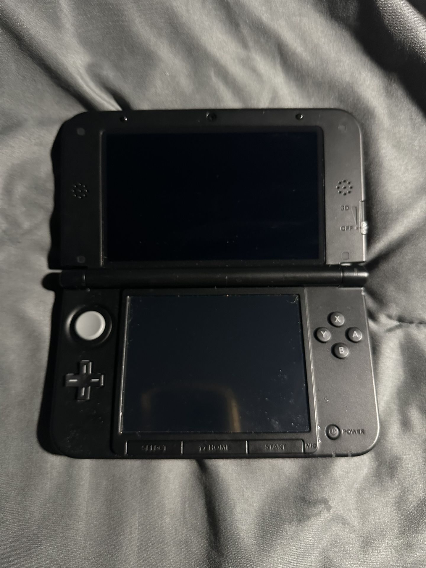 Used Nintendo 3DS XL. Everything still works fine but doesn’t not come with charger or stylist but in an attempt to compensate I threw in a free game (Pac-Man and Galaga Dimensions).