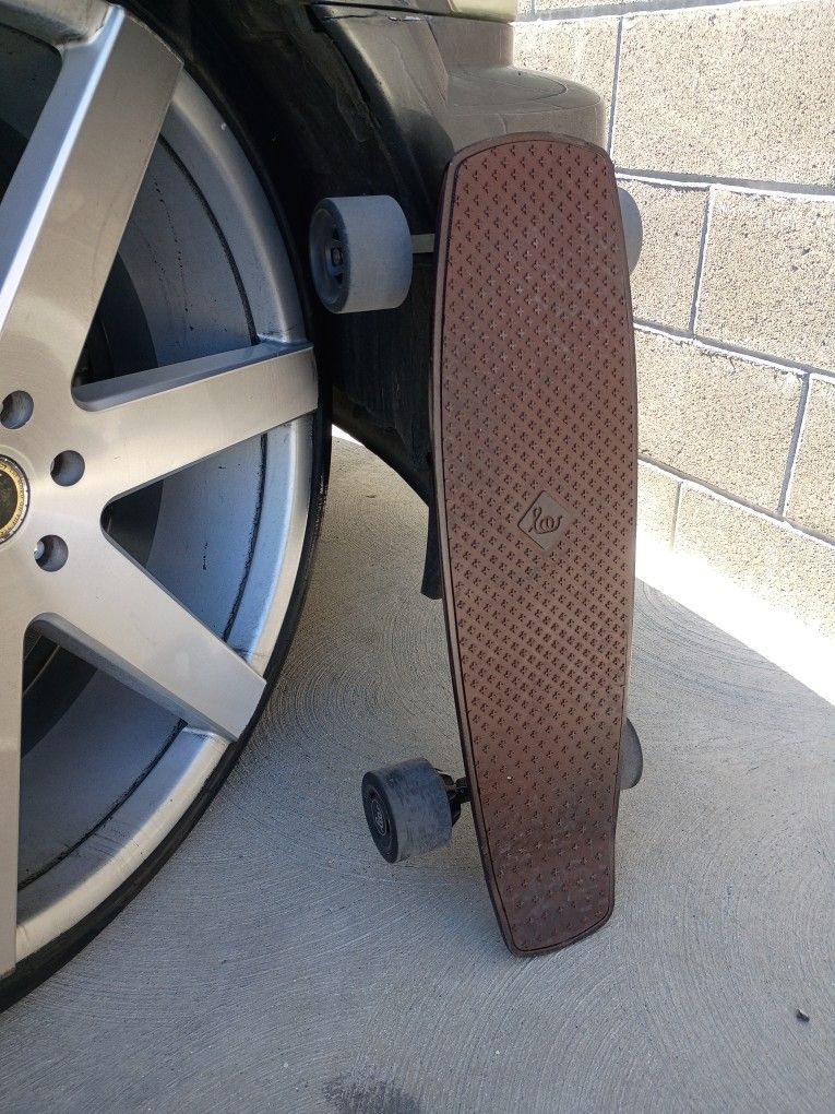This is a swiss developed hand crafted carbon fiber board that is made to represent a penny board. Bought it new for over $900 3 yrs ago when these 2 motor design came out for this small size board. Has original remote which wasn't made well like the board so upgrade the software and bought the upgraded remote which was the game changer. This board is fast for its size and comes with a spare batt and fast charger. Selling it for less then half of what I paid and it only has a few hundred miles on it.