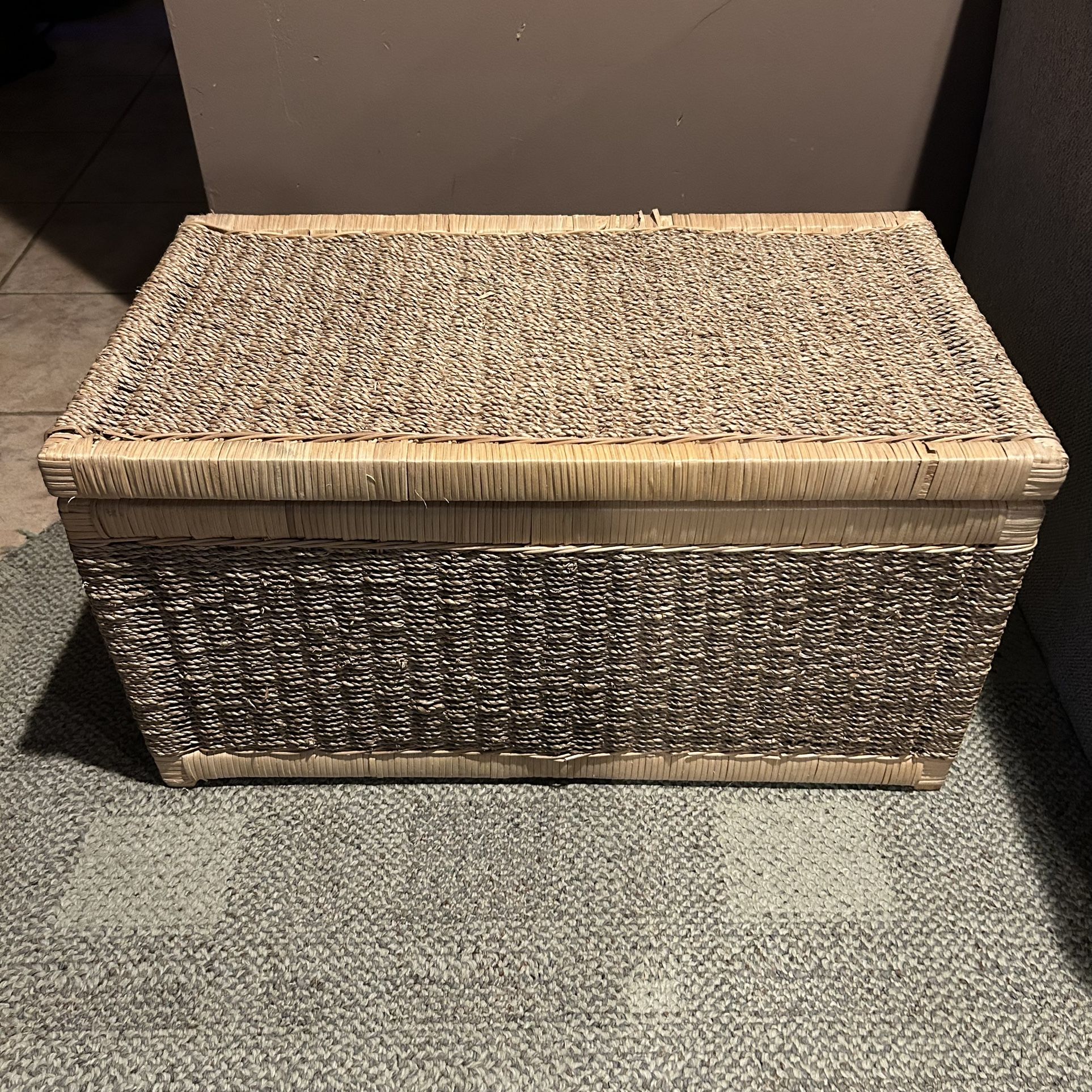 Woven Wicker Storage Chest Basket