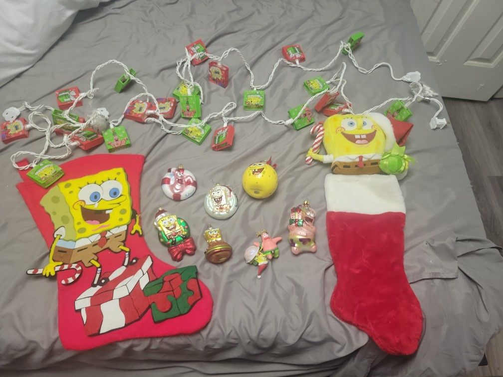 Rare 2000s Spongebob Christmas Ornaments Lights Stockings