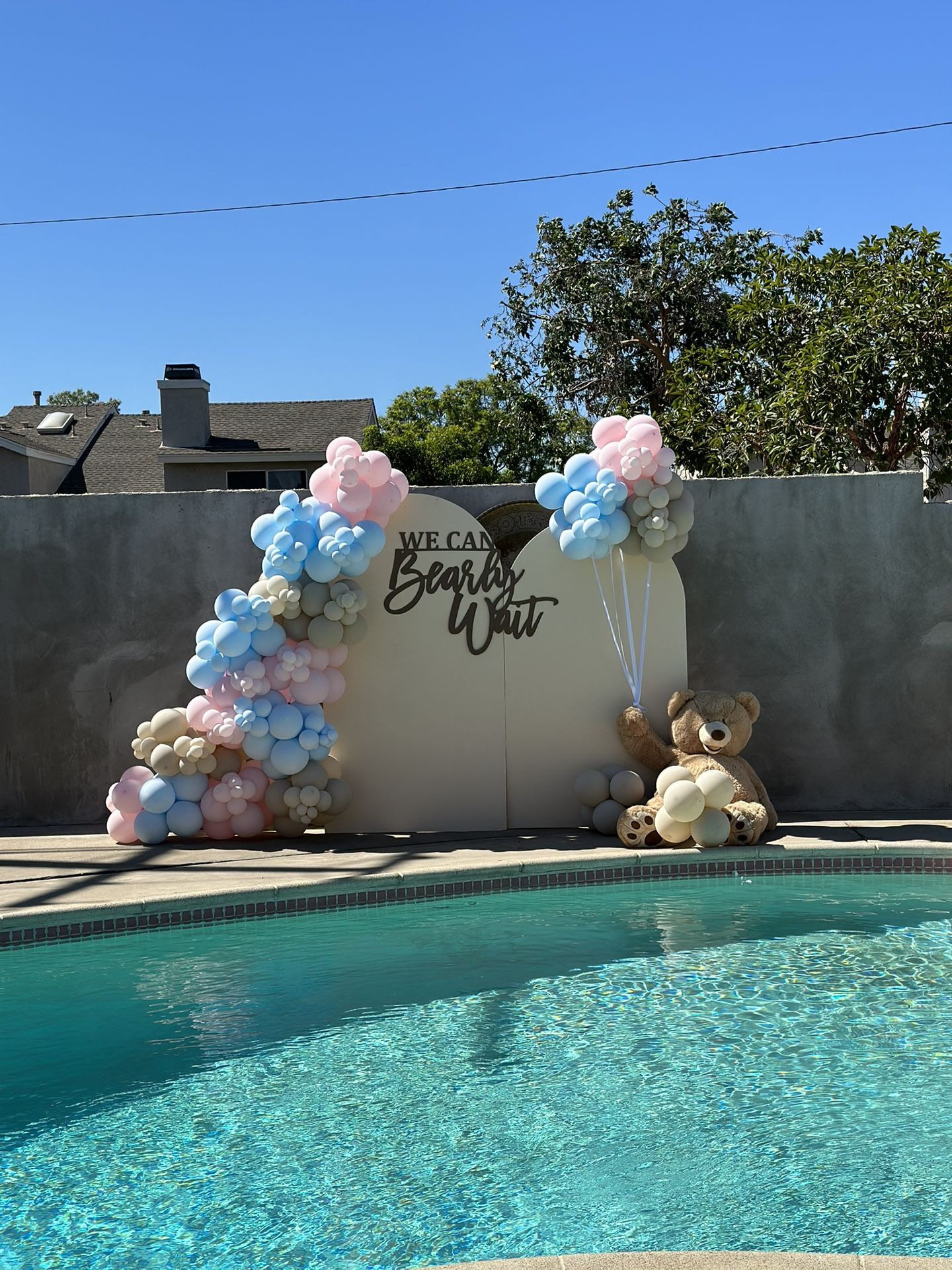 We can bearly wait Balloon arch Backdrop Teddy bear baby shower