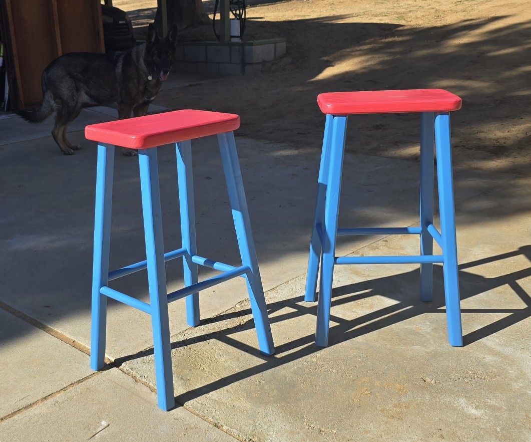Two hand-made wooden kitchen/bar stools. 27 inches high. $30 each