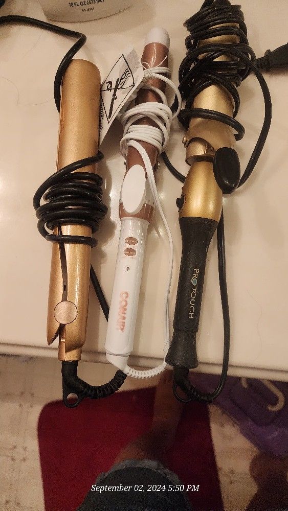 Curling iron straightener And 2 Curling irons Work great just don't need.