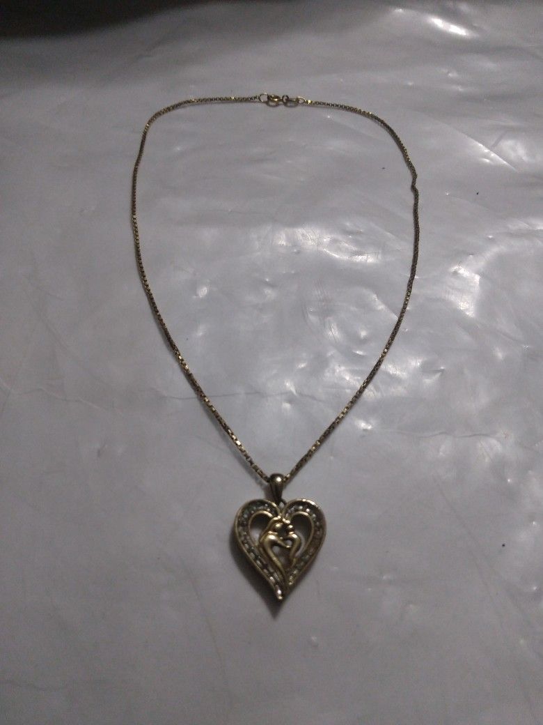 14K Gold Chain And 15-in With 10 K Heart 6And Diamond Pendant Used