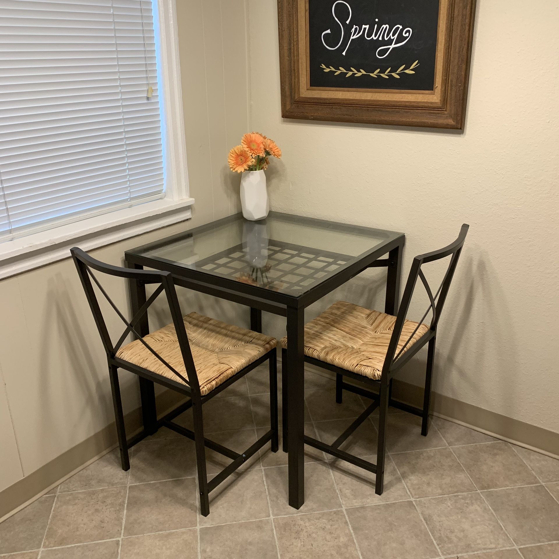 Small square black and wicker table from Ikea. Bought from another person on offerup. A few spots on the seats but in really good condition. Would need someone to pick up from my house as it won’t fit in my car. Top: 28.75 in x 28.75 in Height: 30in