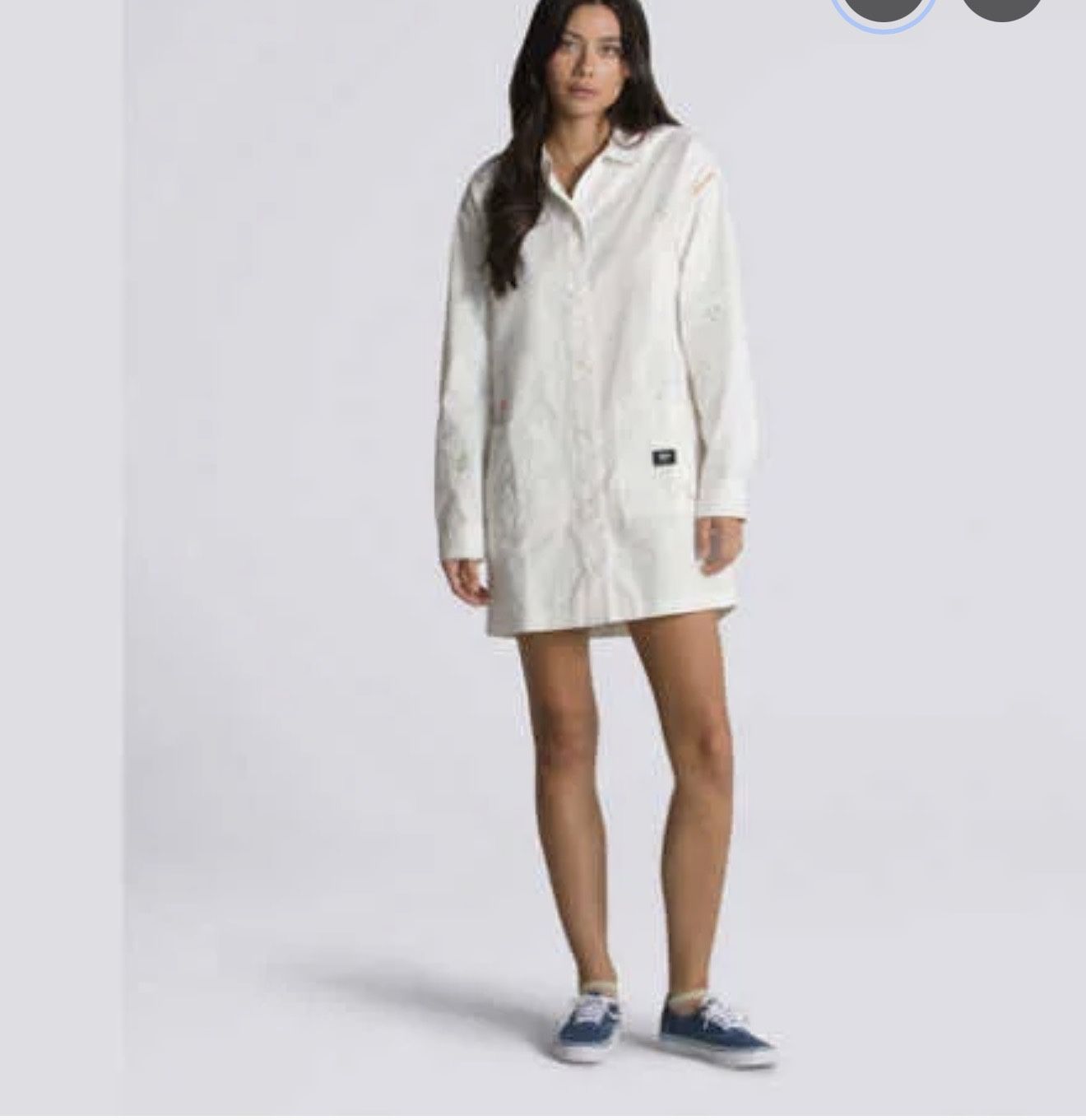 Vans Micro Ditsy Floral Shirt Dress Women Embroidered Button Up Long Sleeve Marshmallow Jacket