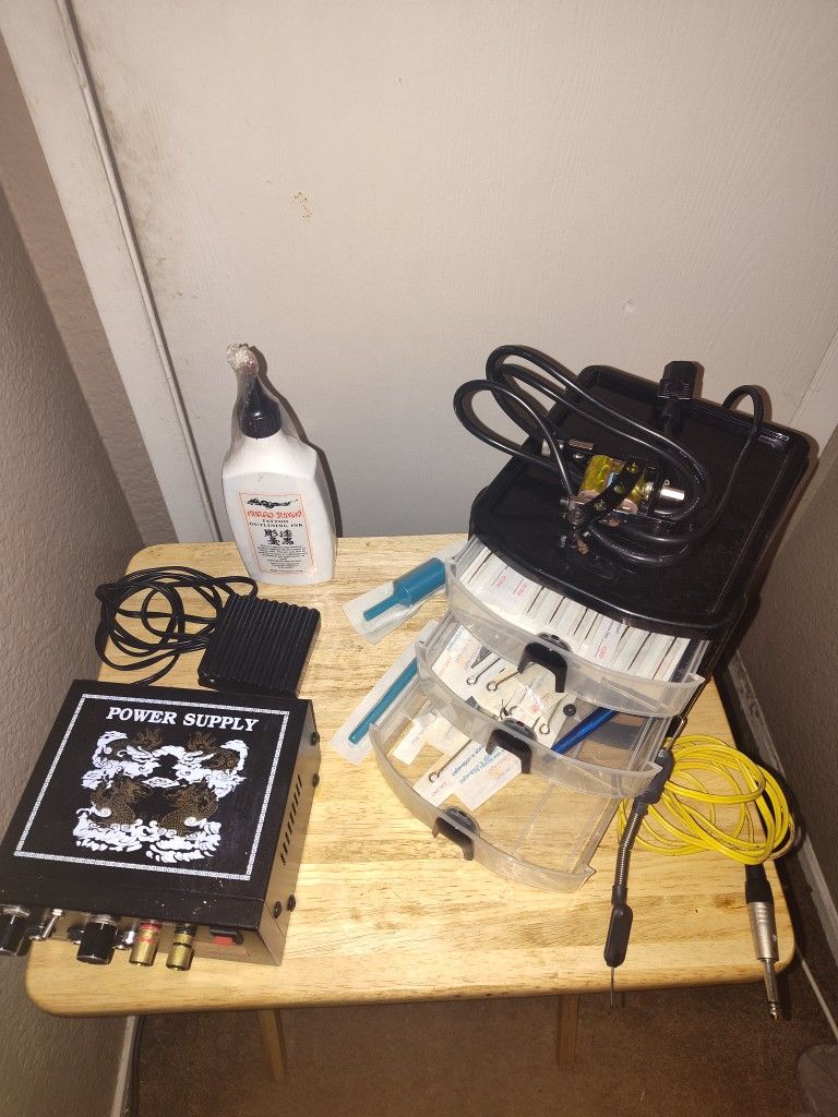 Tattoo kit includes power supply, 2 tattoo machines, needles and ink