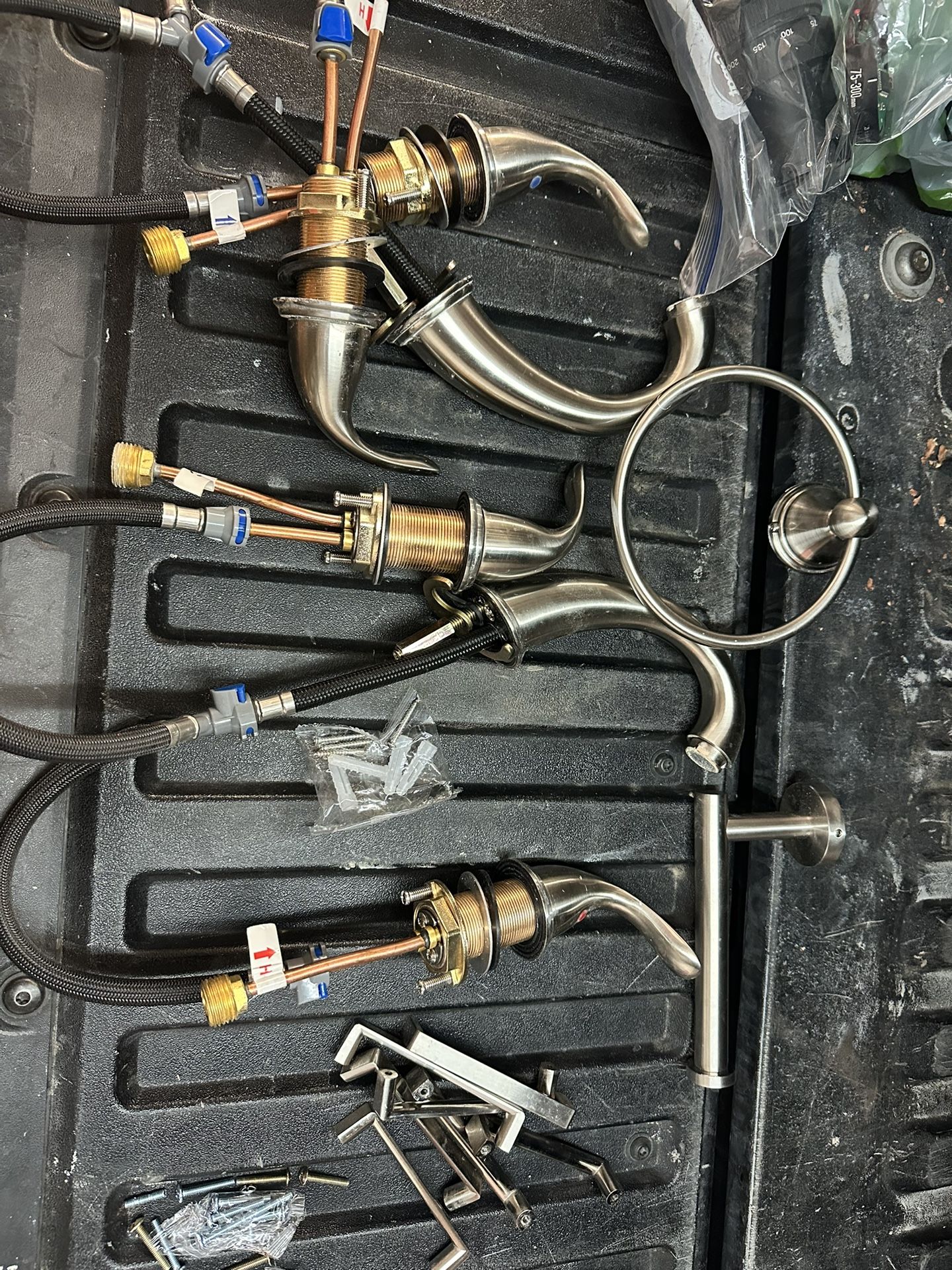 Silver Bathroom Fixtures - 2 Faucets, Towel Ring, toilet paper holder, Pulls