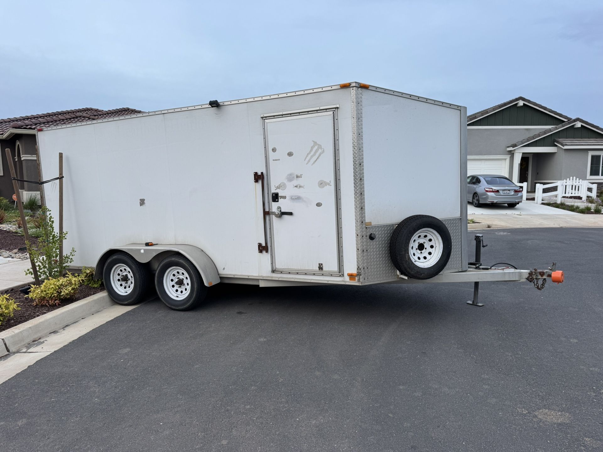 6’6” wide x 16’ long plus V-Nose. All Aluminum frame only 1,400 lbs. plus racking. New tires, LED lighting inside and out. Perfect for Contractors and Handymen. Good condition.